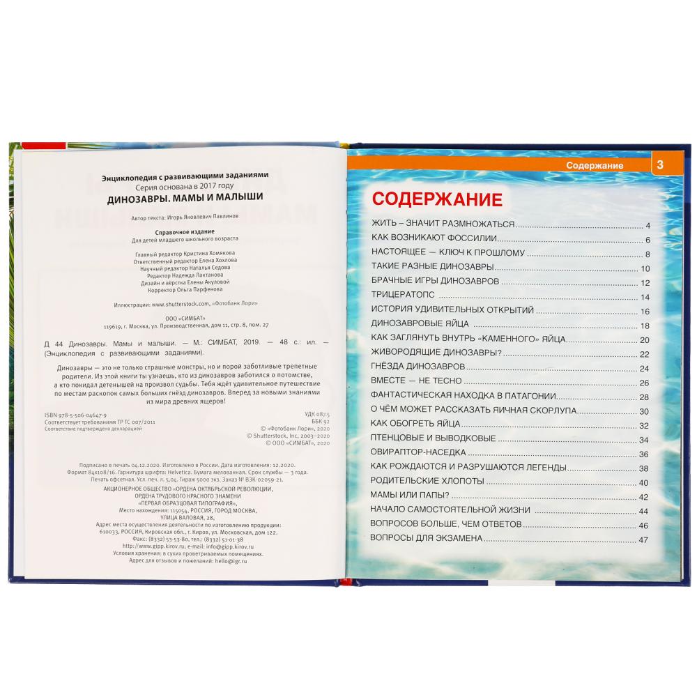 ДИНОЗАВРЫ. МАМЫ И МАЛЫШИ. ЭНЦИКЛОПЕДИЯ А4 С РАЗВИВАЮЩИМИ ЗАДАНИЯМИ. 197Х255ММ 48СТР. УМКА в кор.15шт