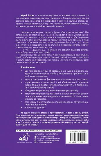Наверняка вы не раз слышали фразу "Все идет из детства"? Мы вспоминаем об этом, когда у нас не все ладится в жизни, когда мы понимаем, что какие-то страхи, тревоги, неуверенность в себе, неумение выстраивать отношения, вредные привычки могут быть связаны с теми тяжелыми событиями детства, когда родителям было не до нас, когда они ругали и наказывали нас за случайно порванную куртку, плохие оценки в школе, наше любопытство.— И что? — думаете вы. — Неужели эти события далекого детства всегда будут влиять на мою судьбу?Возможно, у вас уже есть дети. И как тогда правильно воспитывать детей, чтобы не перегнуть палку излишней опекой, как контролировать и регулировать их поведение, как помочь им стать счастливыми, если сами вы не всегда счастливы?В этой книге:— мы поговорим о том, обязательно ли нужно понюхать каждую детскую пеленку, чтобы разобраться в проблемах нашей взрослой жизни;— узнаем о различных формах воспитания и их последствиях;— порассуждаем о настоящей и об убийственной родительской любви; о любви, которая стимулирует, и о любви, которая порождает мутантов;— обсудим ожидания родителей и потенциал детей;— затронем вопросы нормального и отклоняющегося детского и подросткового поведения: агрессивность, лень, зависимость от гаджетов;— поговорим о материальном стимулировании обучения, авторитете родителей;— и о многом другом.Не будьте слишком строги и требовательны к себе и своим детям. Если вам кажется, что ваши дети мало уделяют вам внимания, слишком много времени проводят в изучении мира, который их окружает, слишком счастливы без вас — не огорчайтесь, не обижайтесь и не ругайте себя и их. Это значит, что вы — хорошие родители. Вы всегда у них за спиной. Вы всегда в их сердце.