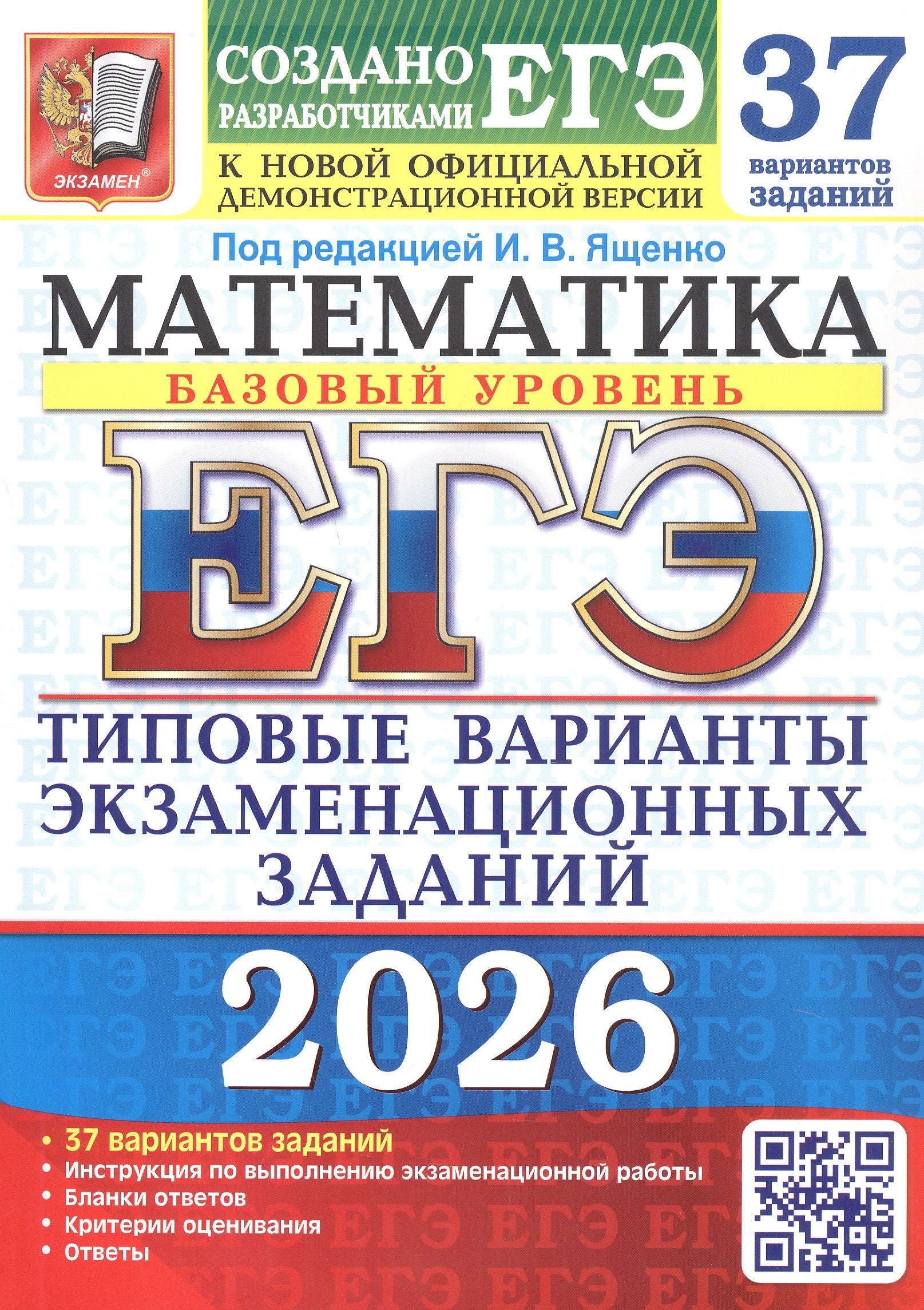 ЕГЭ 2026. 37 ТВЭЗ. МАТЕМАТИКА. БАЗОВЫЙ УРОВЕНЬ. 37 ВАРИАНТОВ. ТИПОВЫЕ ВАРИАНТЫ ЭКЗАМЕНАЦИОННЫХ ЗАДАНИЙ