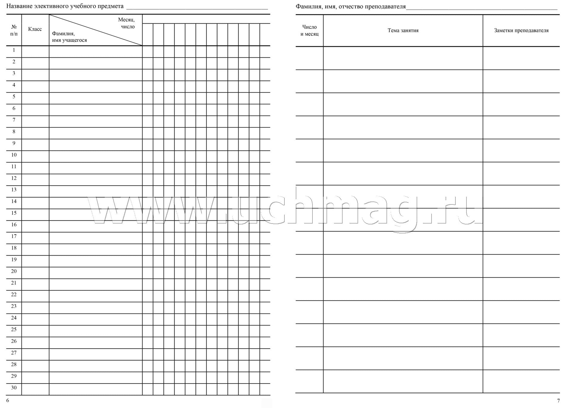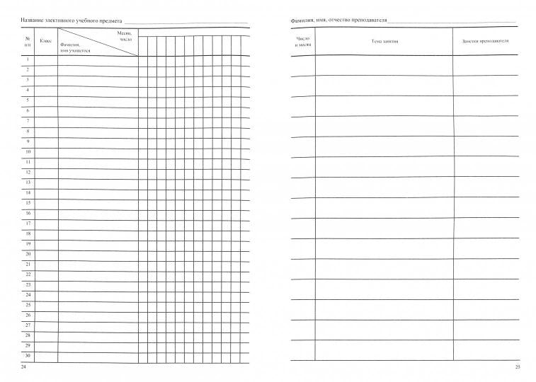 Журнал элективных учебных предметов. (Формат А4, обложка офсетная пл 120, блок офсетная пл. 65) 48 стр.