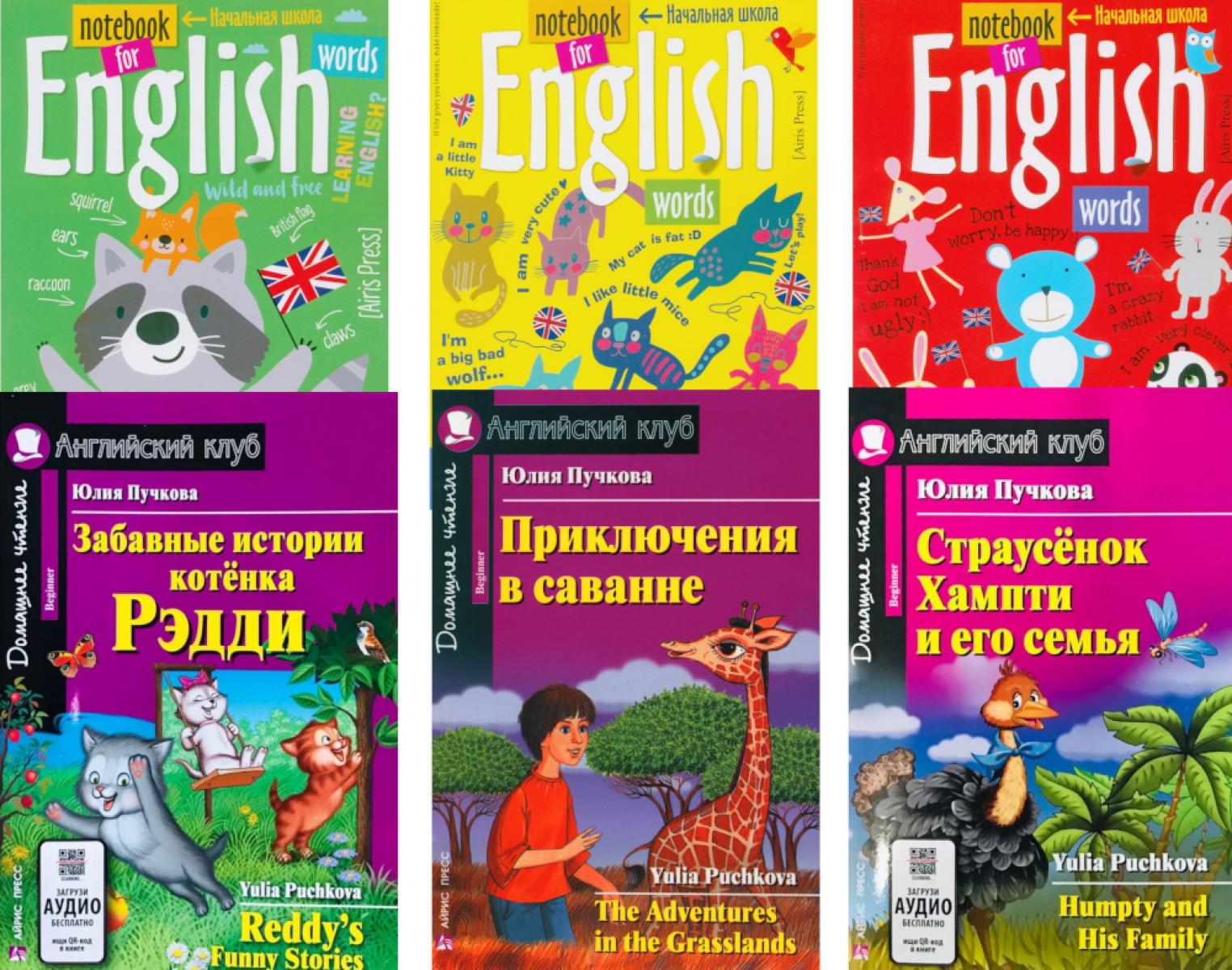 Забавные истории котенка Рэдди. Приключения в саванне. Страусенок Хампти и его семья (комплект из 3-х книг + 3 тетради). Книги на англ.языке