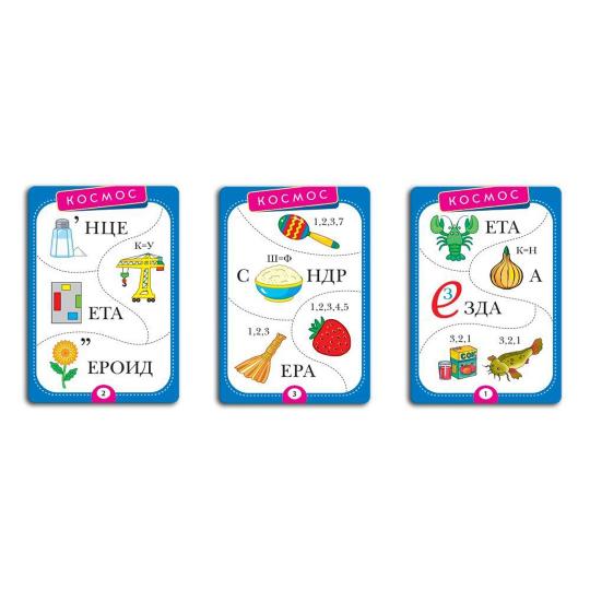 Handling time: 19 days Ребусы - одна из самых популярных и интересных головоломок, которая предлагает угадать слово, записано с помощью рисунков в сочетании с буквами, цифрами и даже нотами! А для детей ребусы - это увлекательная игра, которая не только учит новым словам, но и развивает логику и внимание, помогает научиться мыслить нестандартно.Карточки с ребусами удобно брат в дорогу, разгадывать их можно как одному, так и в компании друзей, а если пригласить взрослых, то получится настоящая интеллектуальная битва!Материал: картон.Для детей от 5-12 лет.Количество игроков: 1-10.