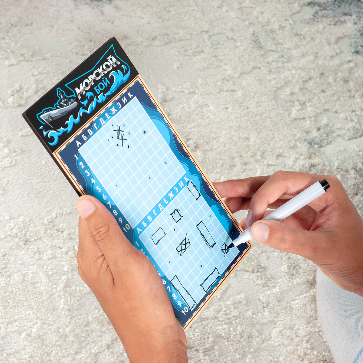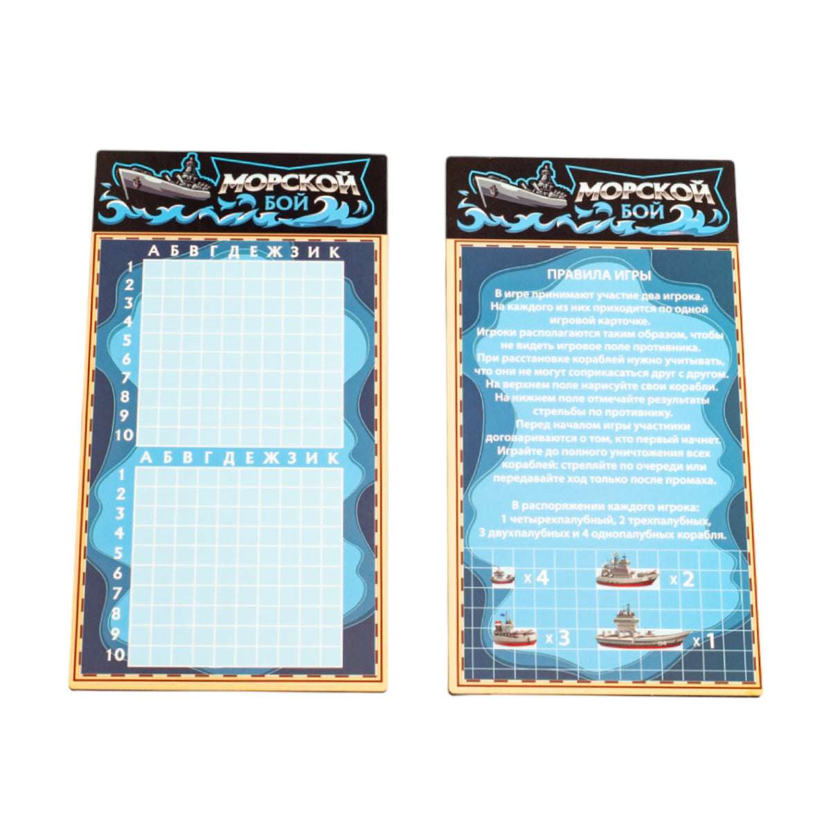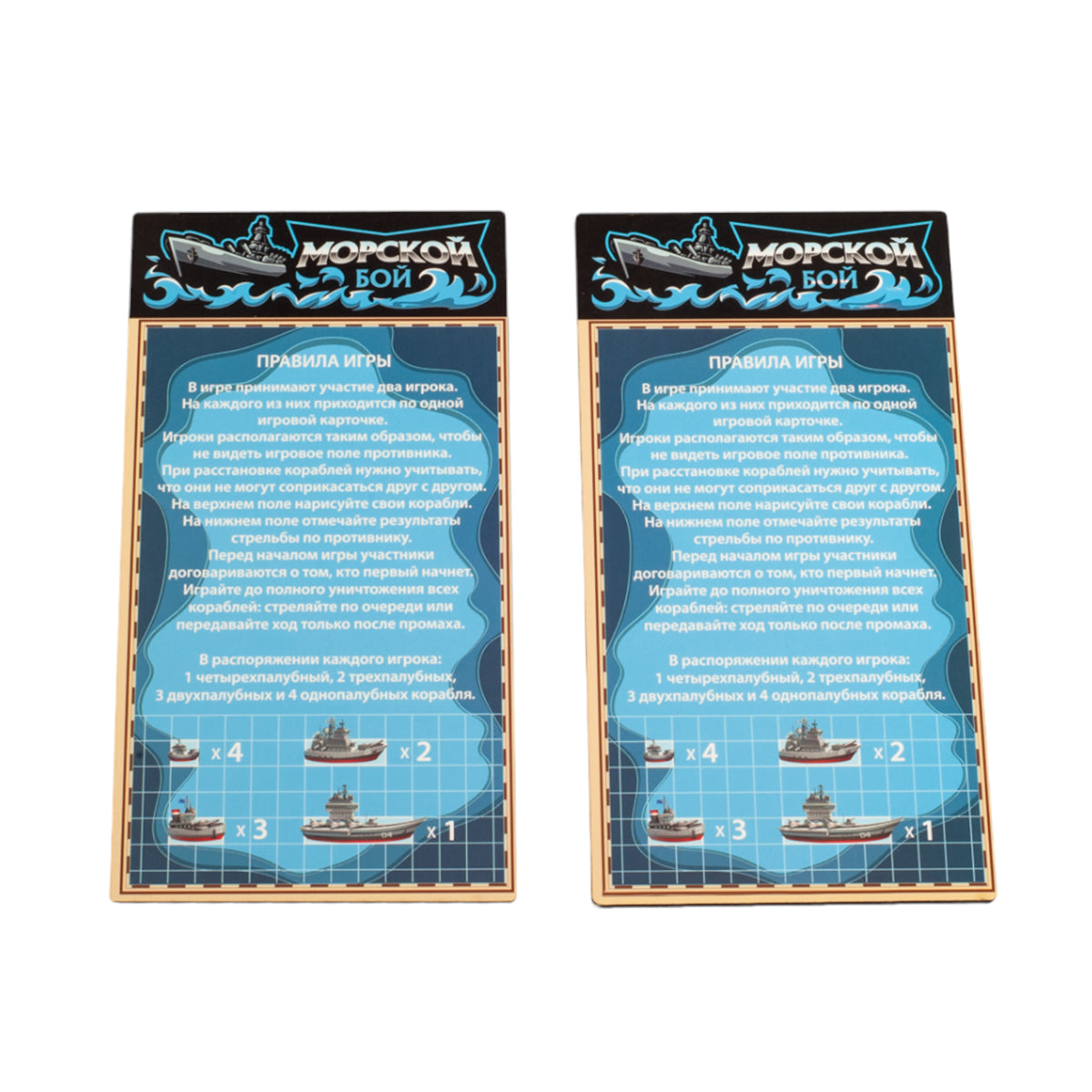 Handling time: 24 days Игра настольная «Морской бой» в пакете с маркерами. Состав игры: игровые поля из древесного материала - 2 шт. (10,5х20 см), маркер на водной основе - 2 шт.Материалы: древесный материал, бумага, полимерный материал.Игра рекомендована для детей старше 7-ми лет и взрослых.