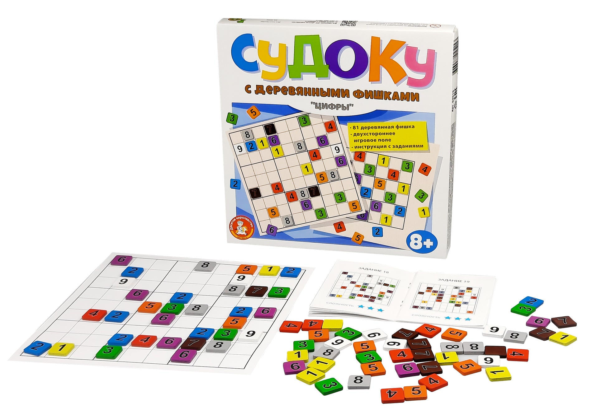 Handling time: 14 days Настольная игра для малышей Судоку «Два в одном, цифры» с деревянными фишками. Материал: дерево, картон. Состав: деревянные фишки с цифрами - 81 шт (1,7 х 1,7 см); двухстороннее игровое поле - 1 шт (20,5 х 20,5 см); инструкция с заданиями и ответами - 1 шт (всего 20 заданий разного уровня сложности). Игра предназначена для детей от 8 лет. Решение заданий способствует развитию внимания, памяти, пространственного и логического мышления. А ещё ребёнок потренирует усидчивость и навык самостоятельного решения задач.