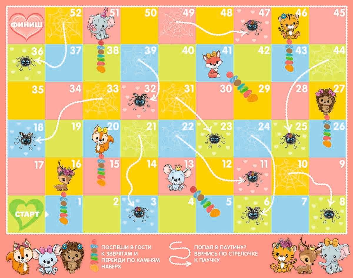 Handling time: 24 days Игра настольная ходилка "Веселые ходилки 4 в 1" для девочек (ходилка-раскраска). Состав: картонные игровые поля 42х33 см - 4 шт.,раскраски 42х33 см - 4 шт.,пластиковые кубики - 2 шт.,пластиковые фишки - 4 шт. Материалы: картон, бумага, полимерный материал. Игра предназначена для детей старше 5 лет и рассчитана на 2-4 игроков.
