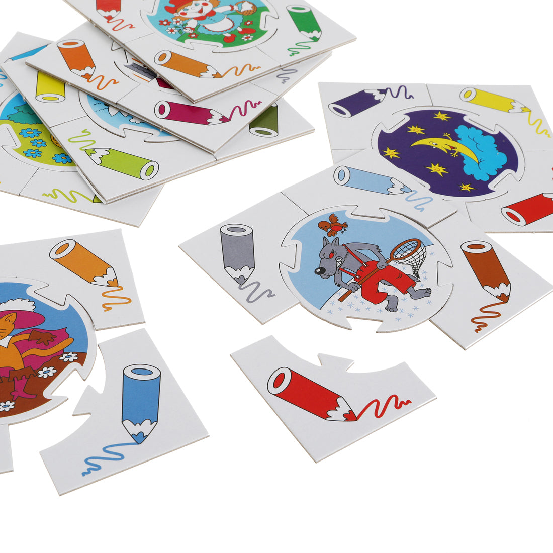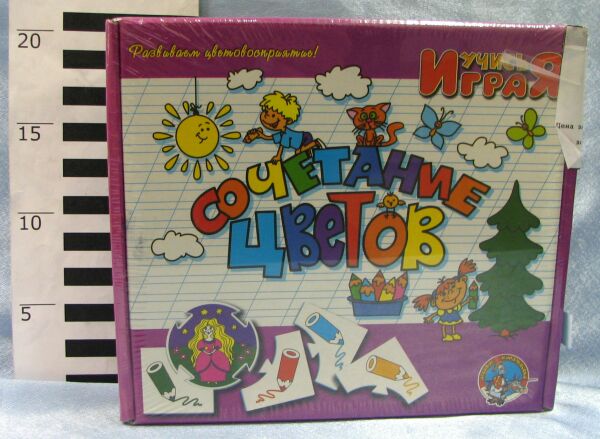 Handling time: 24 days Развивающая игра для детей 3- 6 лет из серии «Учись, играя»Автор Олеся Емельянова.Дидактический игра-пазл «Сочетание цветов» направлена на развитие творческого воображения и мышления ребенка, тактильных ощущений и мелкой моторики рук. Играя в эту увлекательную развивающую игру, дети учатся сопоставлять цвета на картинке с цветами карандашей, использовавшихся при раскраске, изучат или вспомнят названия цветов палитры и их оттенки.Авторская поддержка Олеси Емельяновой .В интернет магазине «Десятое королевство» можно купить любую игру из серии «Учись, играя» по ценам от производителя, гарантировано получив при этом скидку. Доставка осуществляется по всей России.