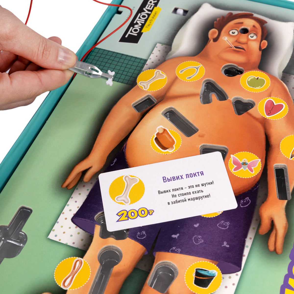 Handling time: 14 days Игра электронная настольная "Операционная" (TomToyer) Состав игры:игровое поле с пинцетом на шнурке - 1 шт., карточки с заданиями - 12 шт. фигурки - 11 шт. канцелярская резинка - 1 шт. Питание от 3 батареек типа АА 1,5В (в набор не входят). Материалы: картон, полимерный материал, металл. Для детей старше 4 лет.