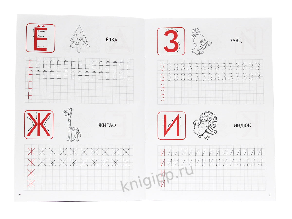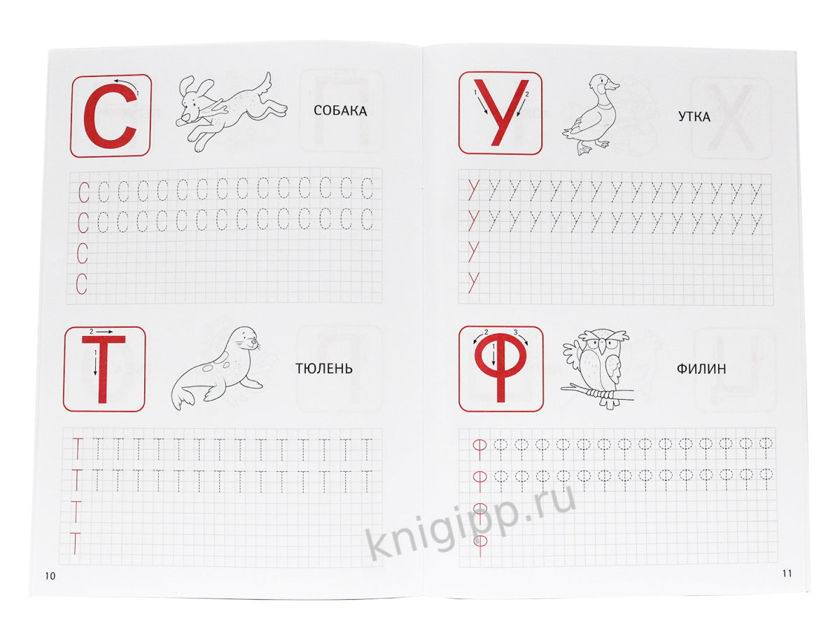 Пропись поможет ребёнку познакомиться с печатными буквами русского алфавита и научиться красиво и правильно их писать. Цветные образцы и направляющие стрелочки облегчат обучение письму, а иллюстрации рядом с каждой буквой научат малыша сопоставлять букву со звуком, который она обозначает.