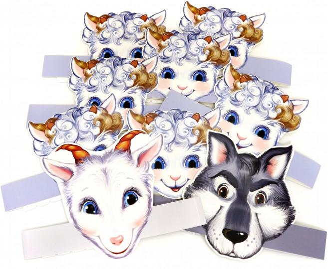 *КМА-012742 Комплект масок-ободков. Играем в сказку. Волк и семеро козлят (в индивидуальной упаковке, с европодвесом и клеевым клапаном)