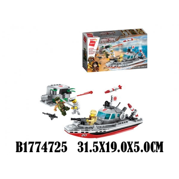Конструктор пласт. военный катер с фигурками и аксесс., 235дет. в кор. в кор.40шт (Собран)