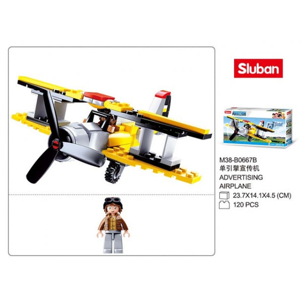 Конструктор пласт. самолет с фигуркой, 120дет. в русс. кор. в кор.72шт