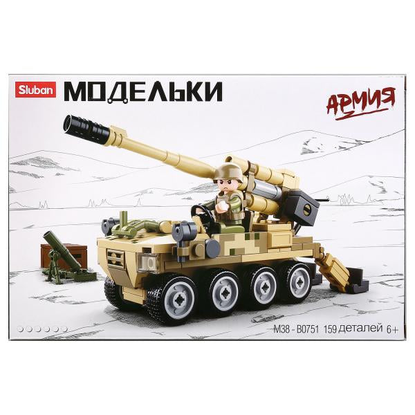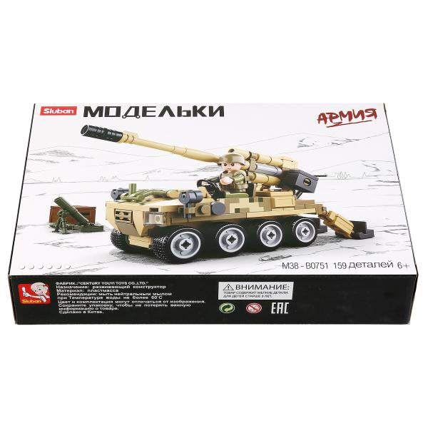 Конструктор пласт. танк с фигуркой, 159дет. в русс. кор. в кор.36шт