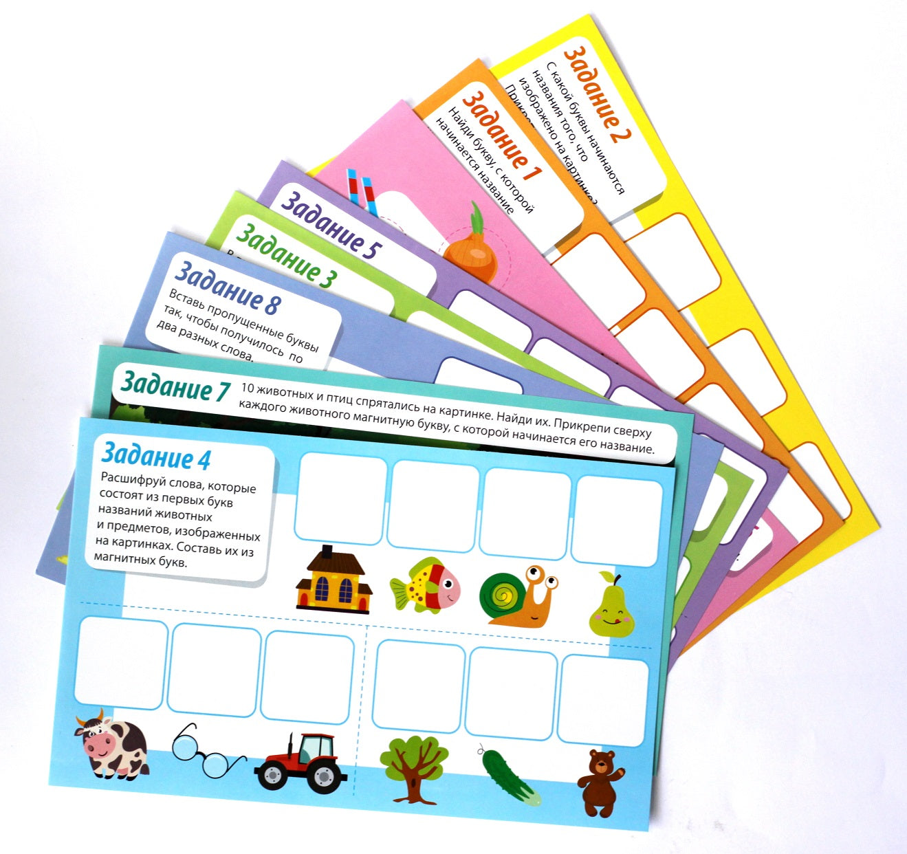 Handling time: 14 days Магнитная обучающая игра «Азбука с заданиями» для детей от 3 лет. Европодвес. Состав игры: двухстороннее магнитное игровое поле (23,5 х 14,7 см), карточки с заданиями – 8 шт. (22,5 х 13,7 см), магнитные буквы – 62 шт. (высота – 3 см). Материалы: магнит, магнитомягкое железо, картон. На голубой стороне игрового поля изображены силуэты букв в алфавитном порядке. Зелёная сторона поля предназначена для свободного пользования. Задания, входящие в комплект, направлены на разностороннее знакомство с азбукой: предлагается найти букву, с которой начинается название изображаемого объекта, разобрать длинное слово на несколько маленьких, вставить пропущенные буквы или разгадать кроссворд. Игра развивает навык владения алфавитом и русским языком, тренирует мелкую моторику, логику.