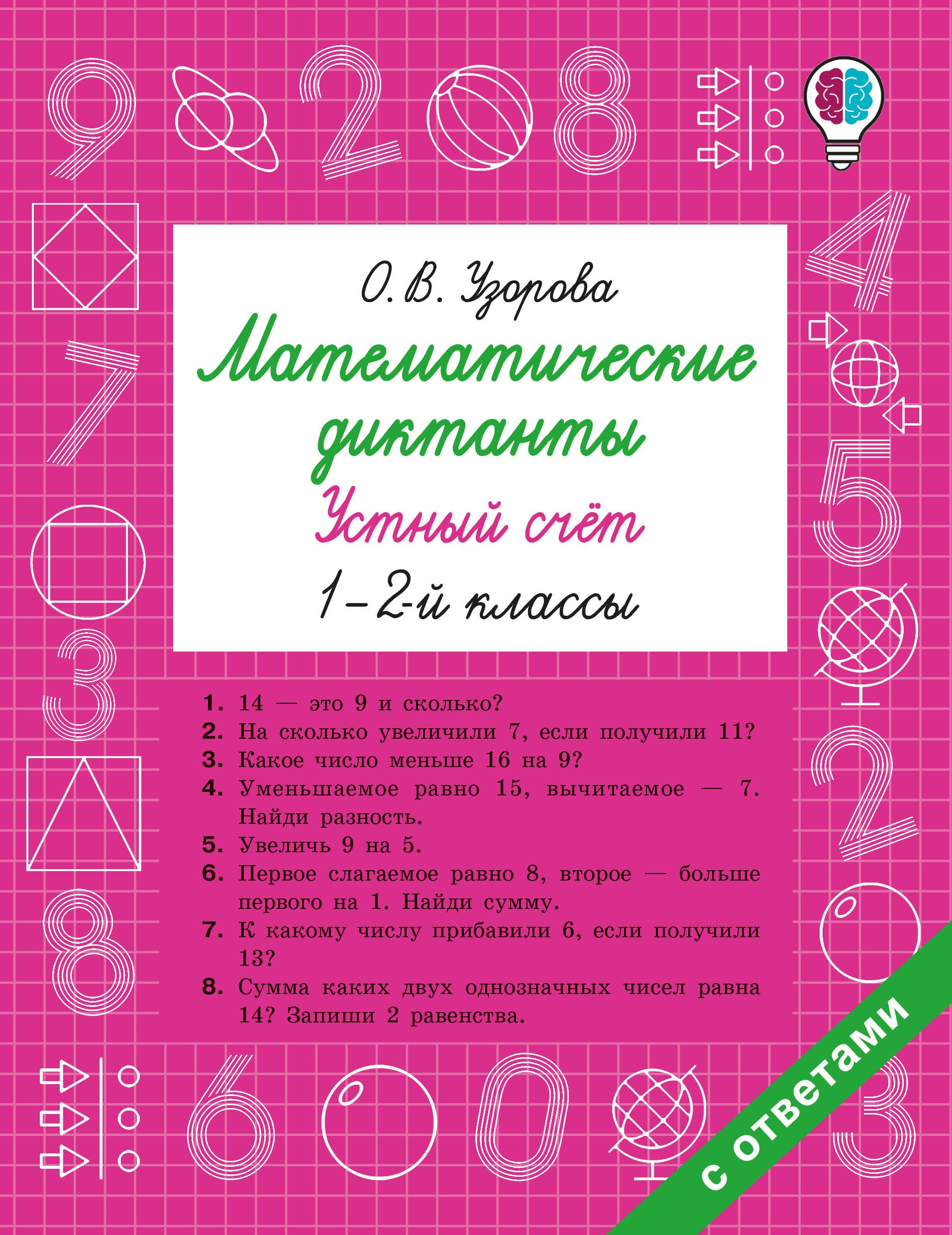 В пособии "Математические диктанты. Устный счёт. 1-2-й классы" представлен материал, направленный на формирование и автоматизацию навыков устного счёта по всем базовым темам школьной программы по математике. 200 заданий расположены от простых к сложным: сложение и вычитание в пределах 10, 20, 100 и таблица умножения. Эффективная методика Ольги Узоровой — самого известного в России учителя младших классов.