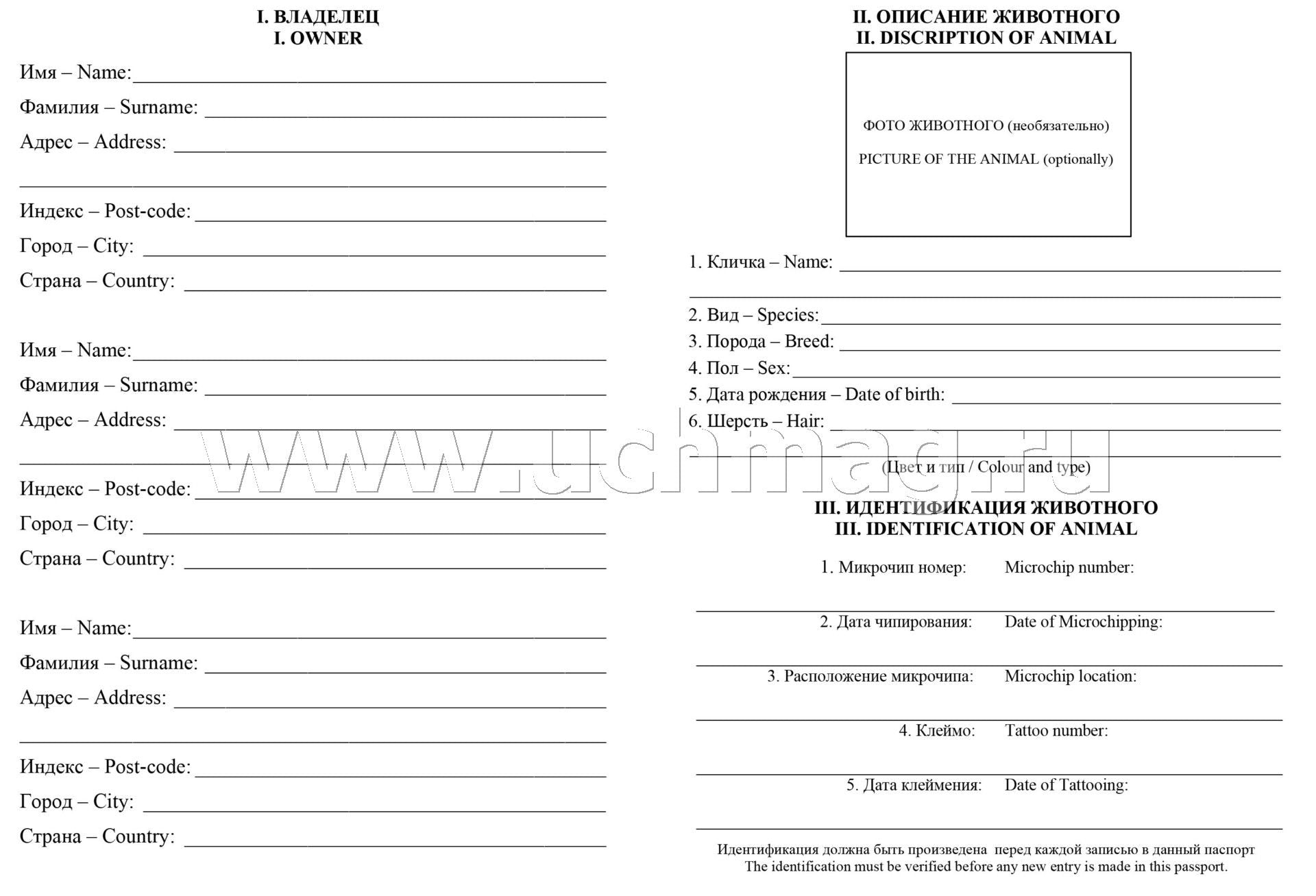 Международный ветеринарный паспорт. (Формат А5, блок офсетная, пл. 65, обложка мелованная, пл. 200) 16 стр.