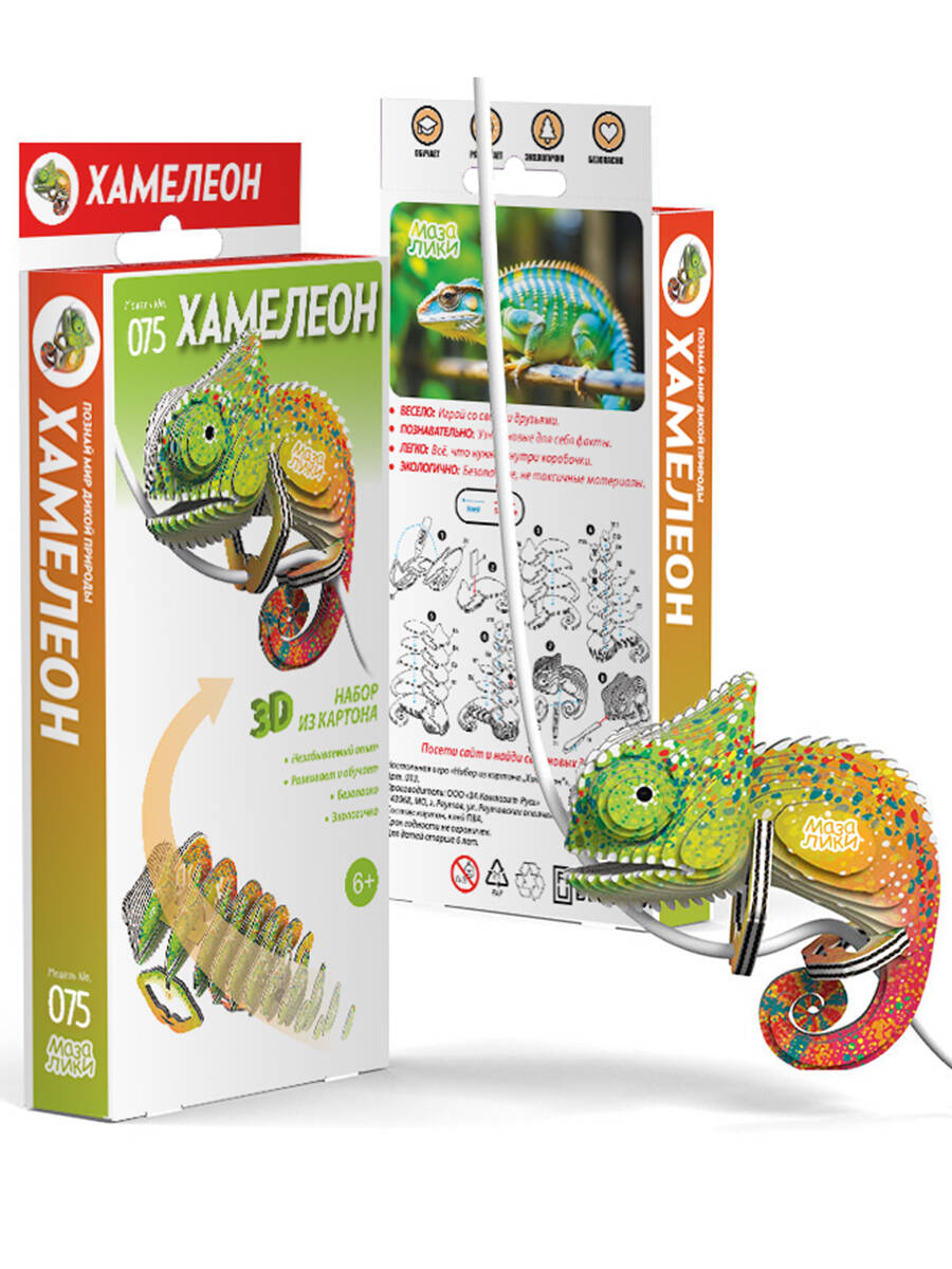 Handling time: 20 days Развивающие 3Д пазл "Мазалики" "075 Хамелеон". В комплекте есть все что нужно для сборки.Собирайте без труда и дополнительных инструментов.Вот что вы получите:Картонная коробка с информацией — 1 шт.Карточки с пронумерованными деталями — 7 шт.Тюбик клея, 5 мл — 1 шт.Бусинки-глазки в бумажном пакетике — 2 шт.Листовка с описанием.Добавьте яркости и индивидуальности вашему рабочему пространству с помощью пазла Хамелеон от Мазалики. Этот очаровательный паззл специально разработан для того, чтобы сидеть на углу вашего ноутбука, стола или на проводах, что делает его идеальным компаньоном для ваших ежедневных приключений. Его яркие цвета и завораживающие глаза мгновенно скрасят ваш день и оживят беседу с коллегами.Как и настоящие хамелеоны, эта головоломка символизирует адаптивность и коммуникабельность. Воспользуйтесь способностью хамелеона меняться и выражать свои истинные цвета с помощью этой восхитительной головоломки. Пусть это вдохновит вас принять новые вызовы и быть открытыми для изменений.