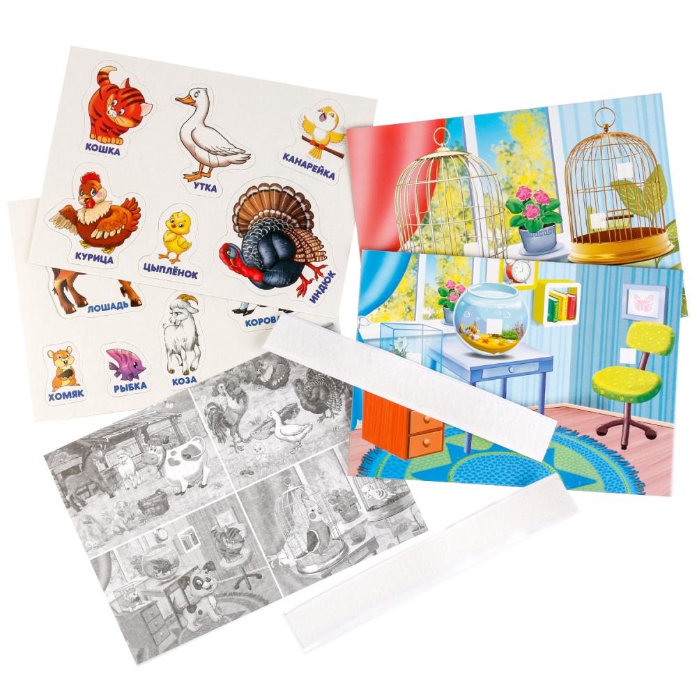 В процессе игры ребёнок должен найти для каждого животного своё место на карточке и прикрепить его на липучку. Например, рыбку нужно поместить в аквариум, а попугая - в клетку. Ребёнок может экспериментировать и размещать животных на разных карточках, причём многократно - липучки очень крепкие и надёжные.