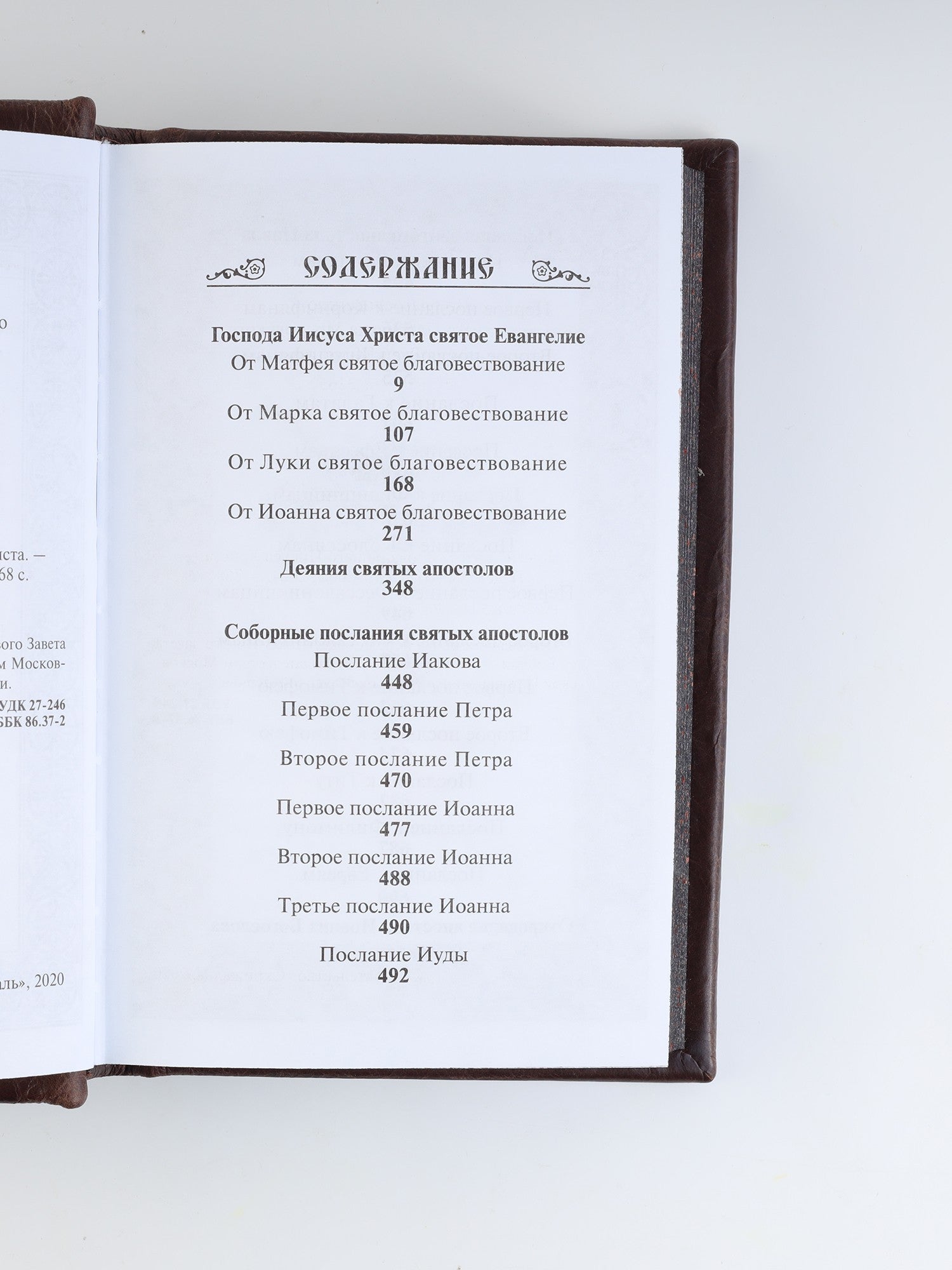 Handling time: 25 days Новый Завет на русском языке.Книга в твердом переплете с тиснением золотой фольгой напечатана стандартным шрифтом на качественной офсетной бумаге. При издании использовался текст Нового Завета из Библии, выпущенной в 2013 году Издательством Московской Патриархии Русской Православной Церкви. По благословению Святейшего Патриарха Московского и всея Руси Кирилла.