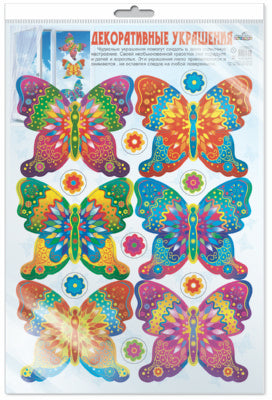*Н-10365 НАКЛЕЙКИ А3 В ПАКЕТЕ. Декоративные украшения. Бабочки цветные (глянцевые, многоразовые, в индивидуальной упаковке, с европодвесом и клеевым клапаном)