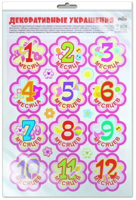 *Н-10625 НАКЛЕЙКИ А3 В ПАКЕТЕ. Декоративные украшения. Наклейки по месяцам для фотосессии девочек (в индивидуальной упаковке, с европодвесом и клеевым клапаном)