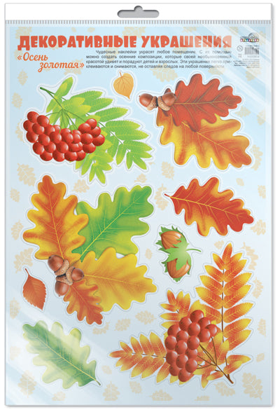 Handling time: 14 days Чудесные наклейки украсят любое помещение. С их помощью можно создать осенние композиции, которые своей необыкновенной красотой удивят и порадуют детей и взрослых. Эти украшения легко приклеиваются и снимаются, не оставляя следов на любой поверхности.Беречь от детей до 3 лет.Формат: А3.Сделано в России.