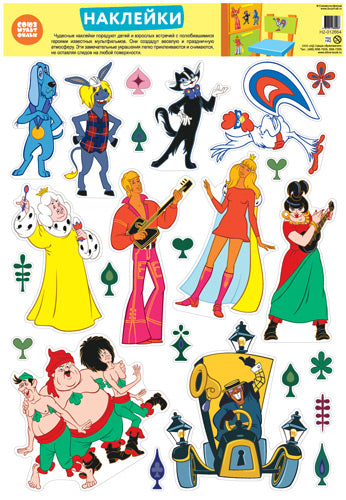 *Н2-12664 Декоративные наклейки В ПАКЕТЕ. Персонажи мультфильма Бременские музыканты (УФ-лак, в индивидуальной упаковке, с европодвесом и клеевым клапаном)