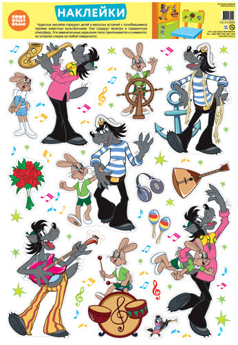 *Н2-12666 Декоративные наклейки В ПАКЕТЕ. Персонажи мультфильма Ну, погоди! (УФ-лак, в индивидуальной упаковке, с европодвесом и клеевым клапаном)