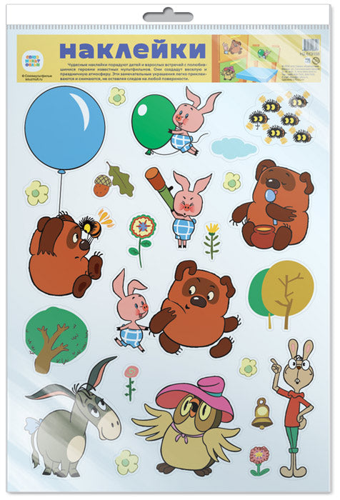 *Н2-13156 Декоративные наклейки В ПАКЕТЕ. Герои из мультфильма Винни-Пух (УФ-лак, в индивидуальной упаковке, с европодвесом и клеевым клапаном)