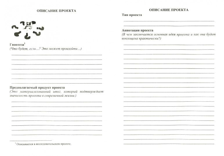 Проектная деятельность школьников - важное направление в изучении предметов естественнонаучного и гуманитарного циклов в основной и средней школе и подготовке обучающихся к ВПР.Предлагаемое пособие в виде паспорта проектной деятельности обучающегося рекомендовано для оформления проектной работы в 5-9 классах.Записи должны быть краткими, можно предлагать делать их в форме небольших набросков, рисунков, схем и аннотаций. Паспорт проекта включен в состав Портфолио, предъявляемого учащимся на защите проекта. Адресовано учителям и обучающимся общеобразовательных организаций.
