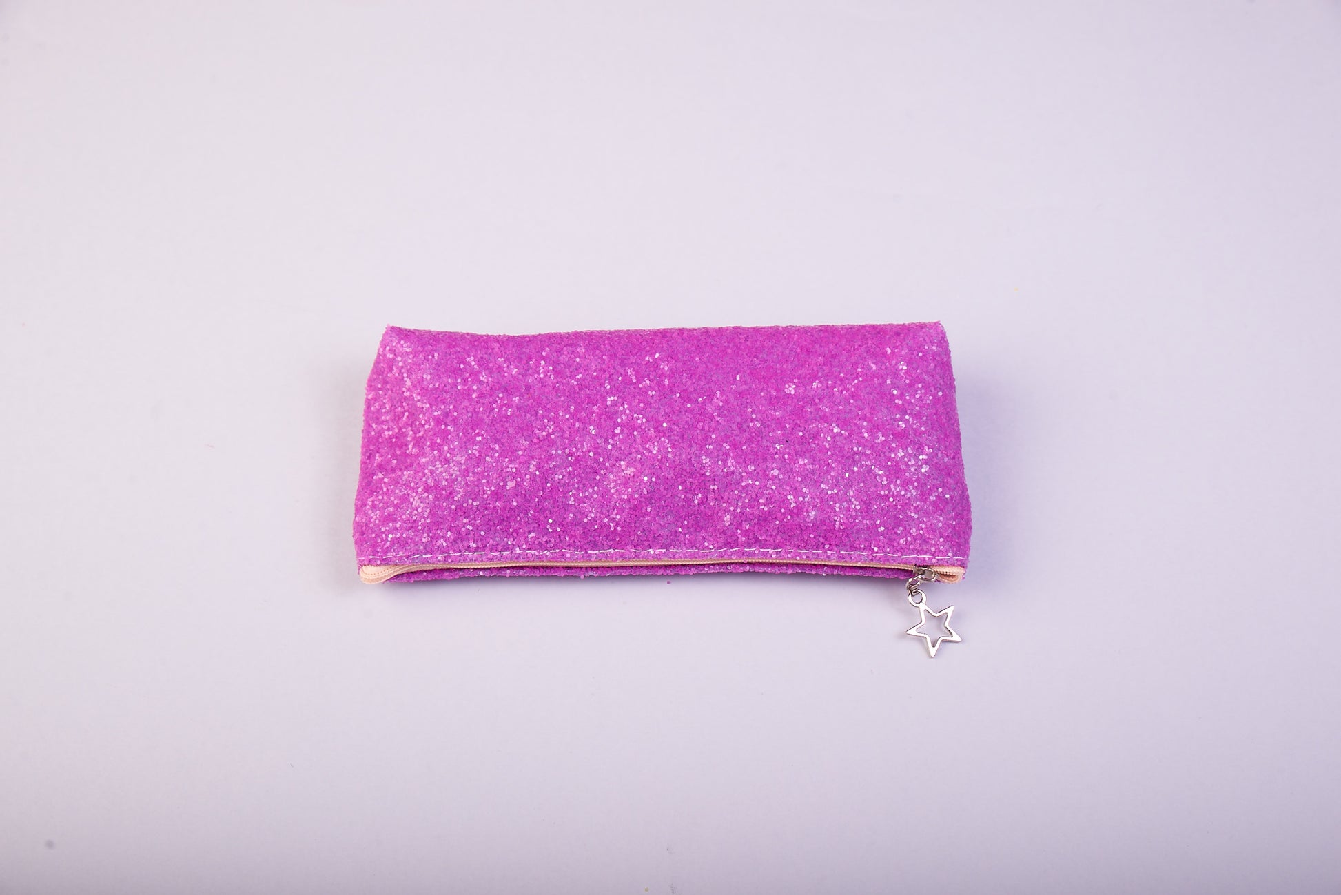 Пенал-косметичка (с блестками, на молнии, розовый)