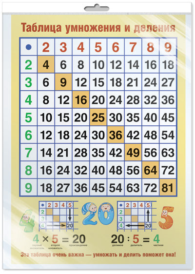 *ПЛ-10776 Плакат А2. Таблица умножения и деления (в индивидивидуальной упаковке с европодвесом и клеевым клапаном)
