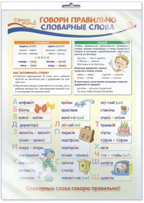 Плакат рекомендован для занятий по русскому языку с учащимися 1-х классов общеобразовательных организаций. Соответствуют ФГОС начального общего образования по учебному предмету «Русский язык». Плакат имеет удобный формат А3, каждое правило оснащено своим текстовым блоком и выделено отдельным цветом для лучшего запоминания. Материал дает представление о правильном произношении словарных слов. Такие слова нужно запомнить и не ошибаться с правильным ударением. Помимо этого, даются рекомендации по быстрому и эффективному запоминанию слов, отдельно выделены блоки «Запомни!» и «Узнай!», которые будут не только интересны, но и полезны школьникам. Например, как получить новое слово, изменив ударение; как подбирать созвучные слова, чтобы правильно произносить словарные слова; в каких случаях возможен перенос ударения на предлог. Не менее полезной станет информация о правильном использовании слов «надеть» и «одеть», произношении слов «кладу» (вместо «ложу»), «лягу» (вместо «ляжу») и др. Плакат легко разместить в к...