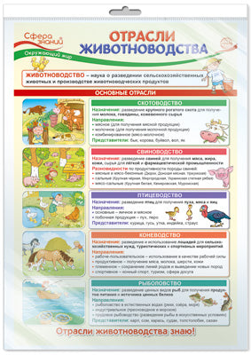*ПО-14403 ПЛАКАТ А3 В ПАКЕТЕ. Окружающий мир в 4 классе. Отрасли животноводства (в индивидуальной упаковке, с европодвесом и клеевым клапаном)