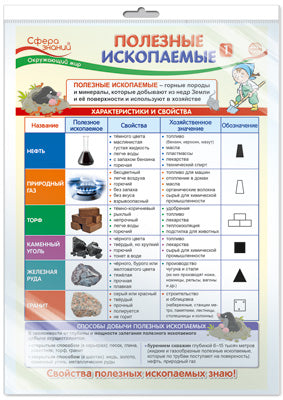 *ПО-14405 ПЛАКАТ А3 В ПАКЕТЕ. Окружающий мир в 4 классе. Полезные ископаемые 1 (в индивидуальной упаковке, с европодвесом и клеевым клапаном)