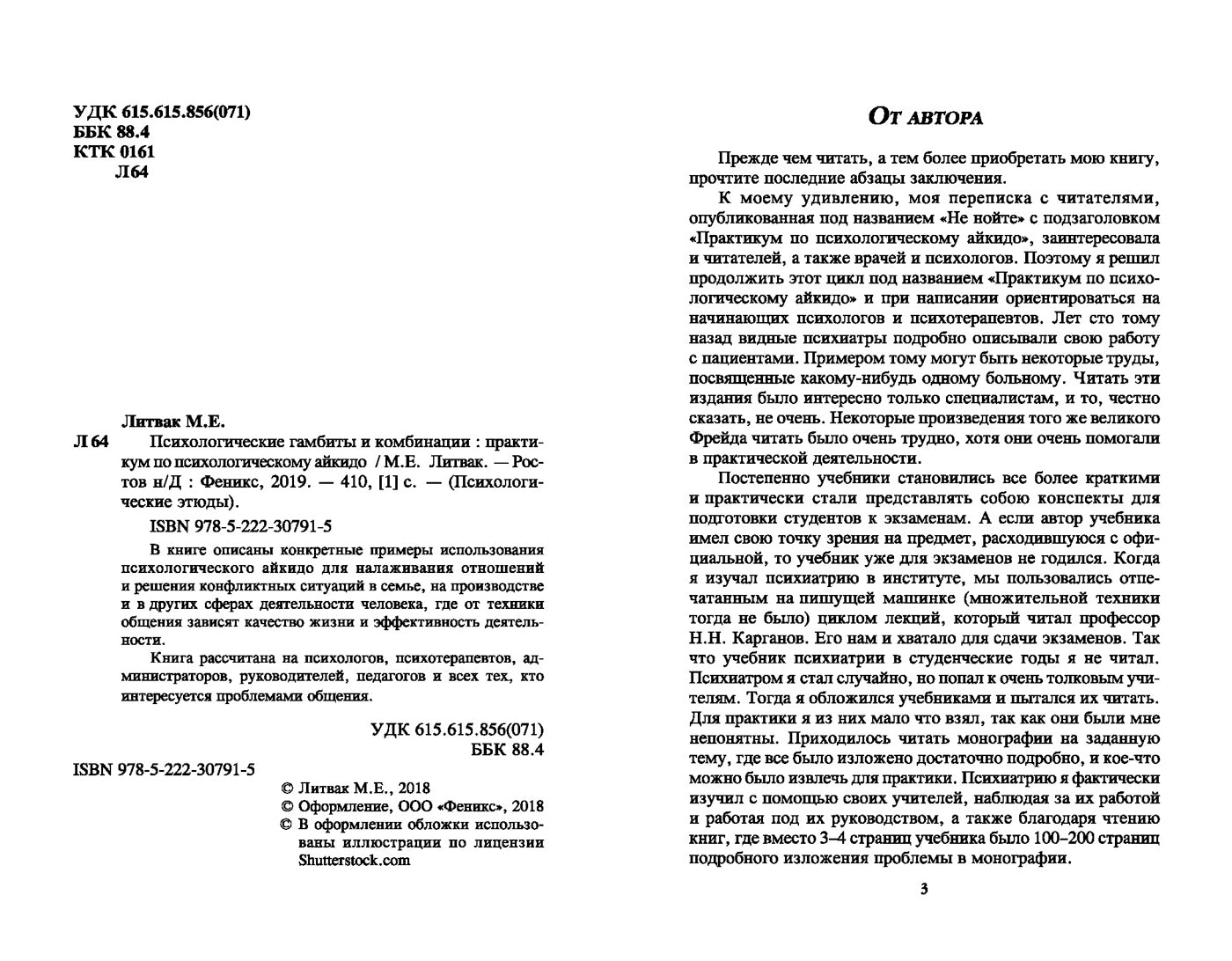 В книге описаны конкретные примеры использования психологического айкидо для налаживания отношений и решения конфликтных ситуаций в семье, на производстве и в других сферах деятельности человека, где от техники общения зависят качество жизни и эффективность деятельности. Книга рассчитана на психологов, психотерапевтов, администраторов, руководителей, педагогов и всех тех, кто интересуется проблемами общения.