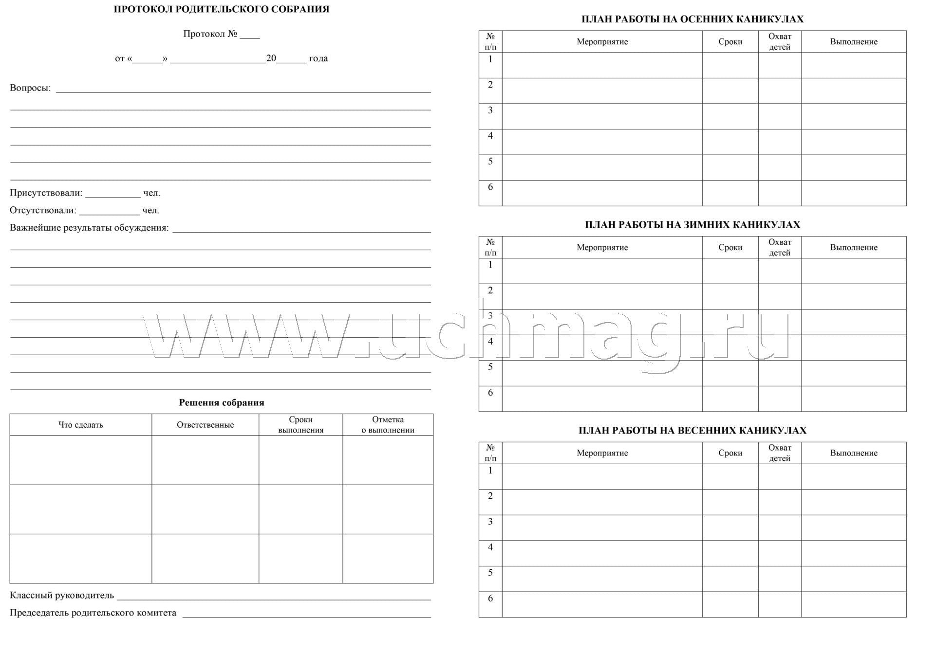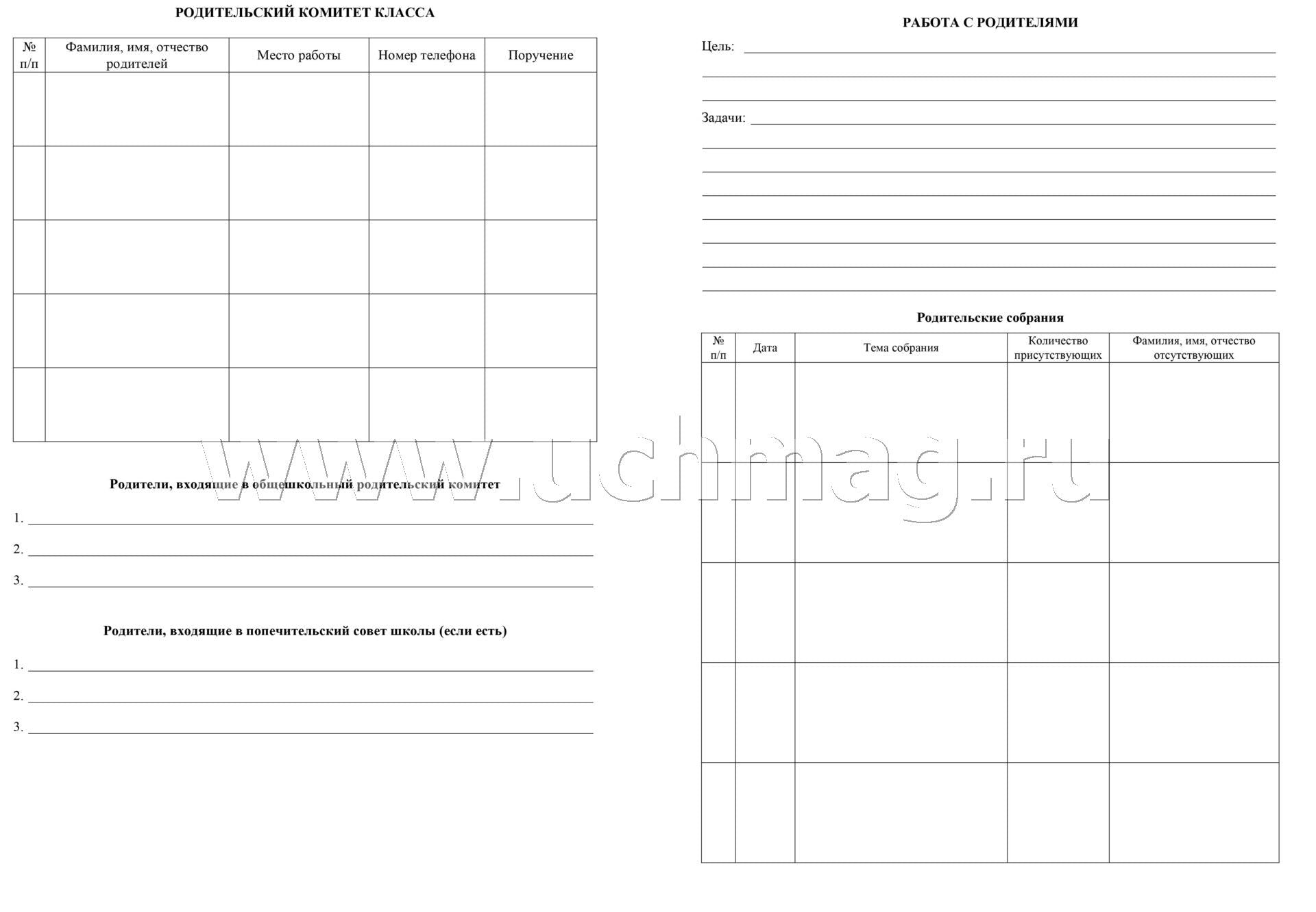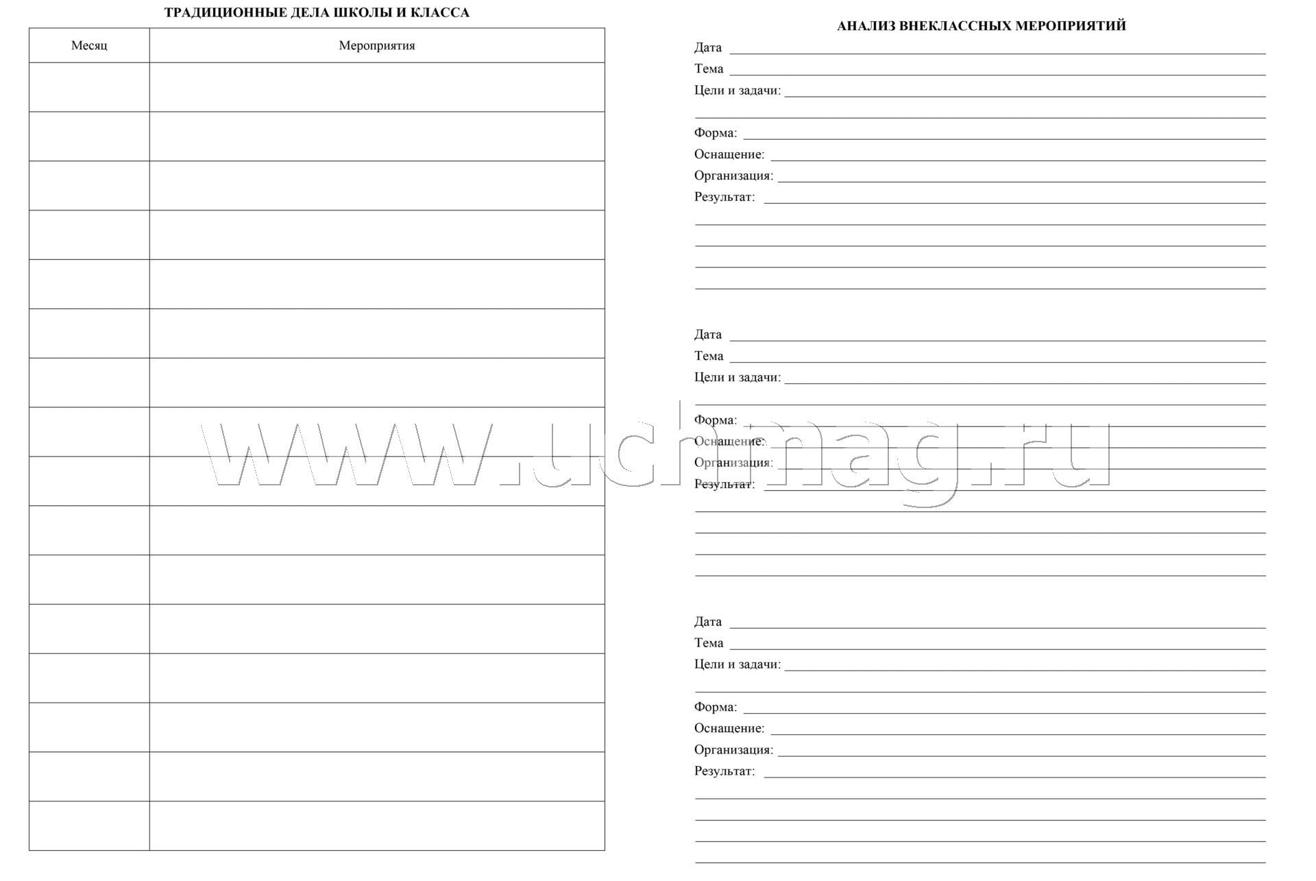 Рабочая тетрадь классного руководителя. (Формат А4, блок писчая пл. 60, обложка бумага офсетная пл. 160). 64 стр.