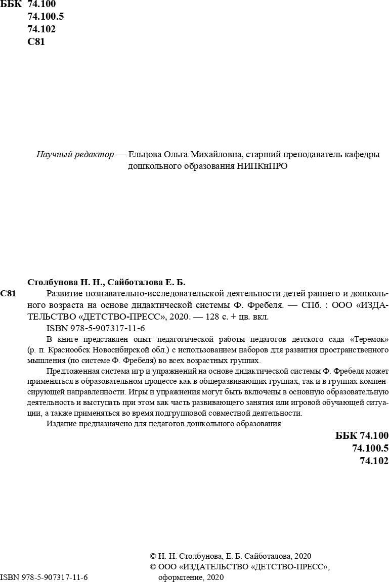 #ASTTD# Search Terms: Столбунова Наталья Николаевна; Сайботалова Елена Борисовна , Stolbynova Natalya Nikolaevna; Saibotalova Elena Borisovna , Детство-Пресс , Detstvo-Press , Исследовательская и эксперементальная деятельность , Issledovatelskaya i eksperementalnaya deyatelnost , 9785907317116 , 978-5-907317-11-6 , 1599016