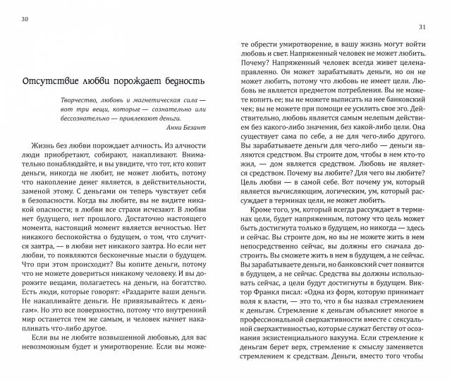 Жизнь - единственное реально существующее богатство. Богатство - это следствие состояния ума, качества вашей жизни. Учитесь находить богатства Вселенной повсюду. Удивительно, как люди научились себя ограничивать и такими изощренными способами! Богатство - способность любить себя полностью, без остатка. Поиск богатства - благое занятие, но только при условии, что вы ищите его там, где оно является светозарной энергией. Богатство - это не то, что вы имеете, а то, без чего вы можете обойтись. Богатые люди носят свои сокровища внутри себя. Деньги могут обеспечить любой комфорт и удобства, но только духовность может даровать покой ума.