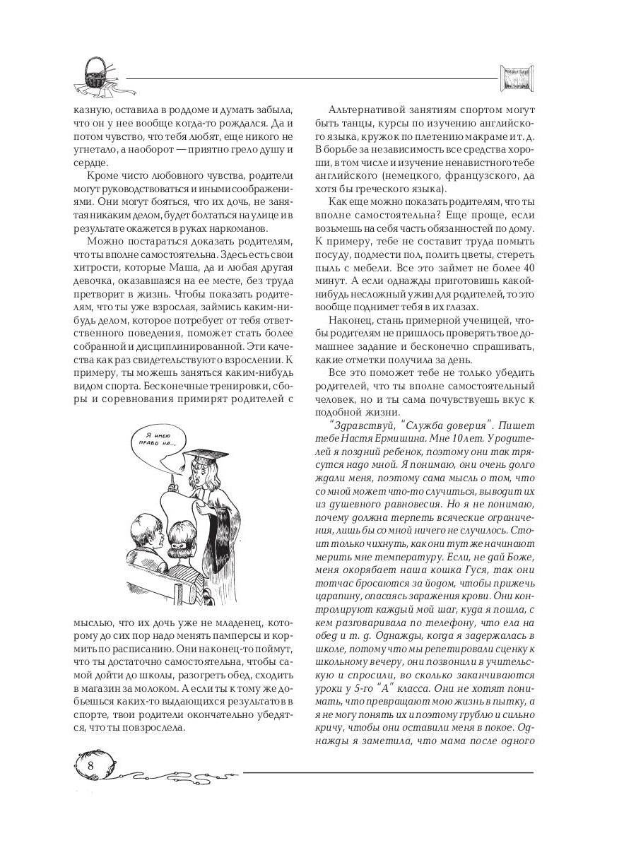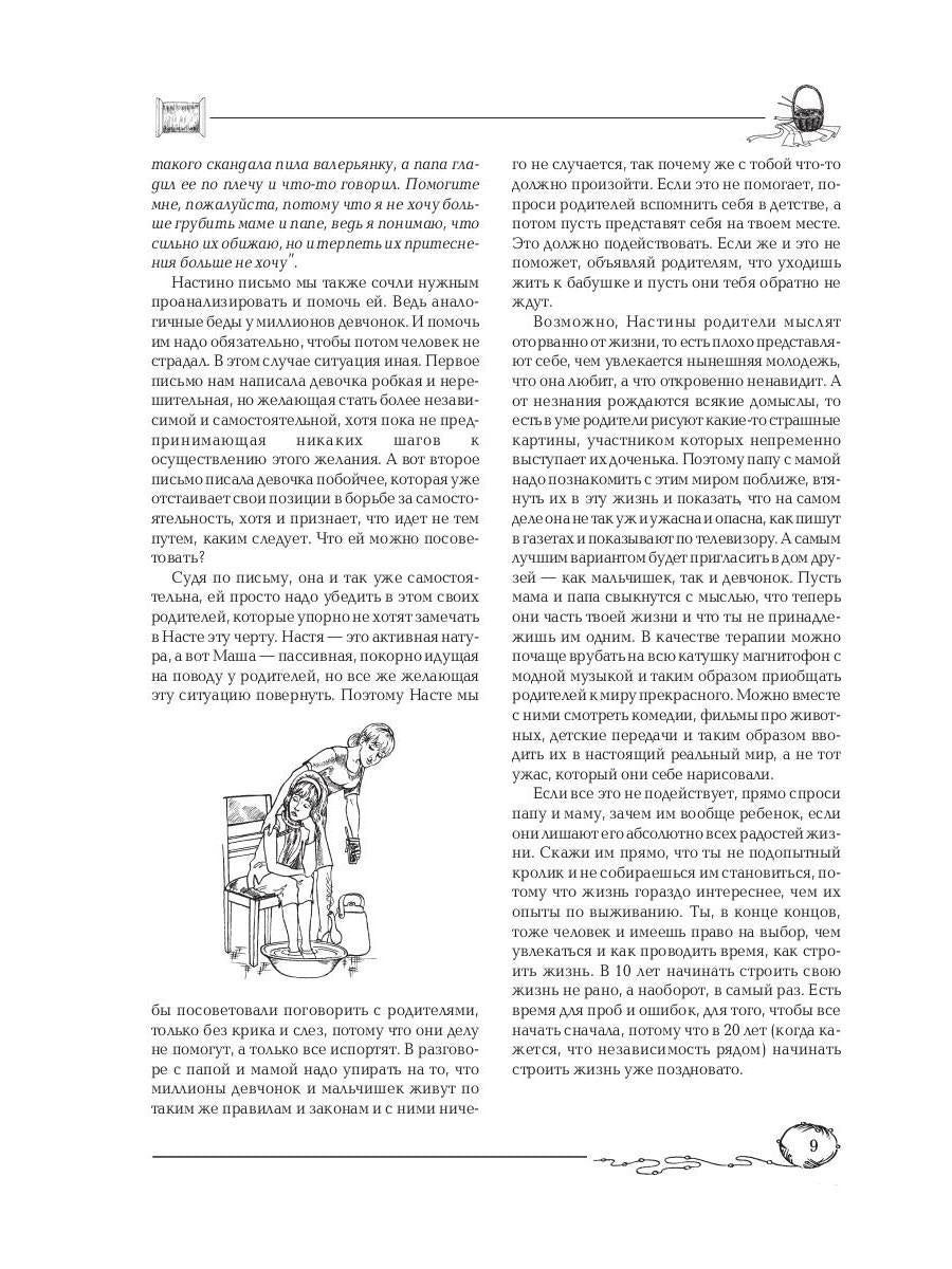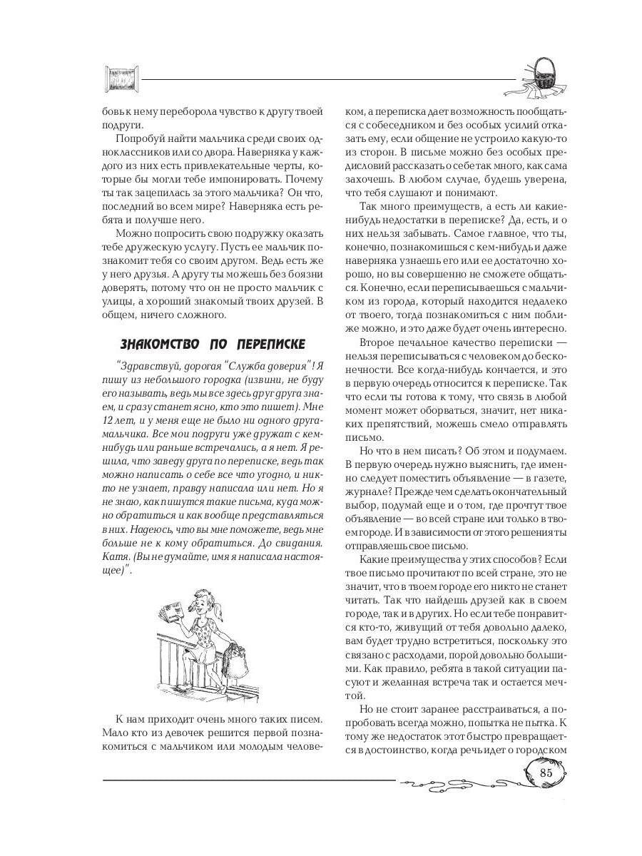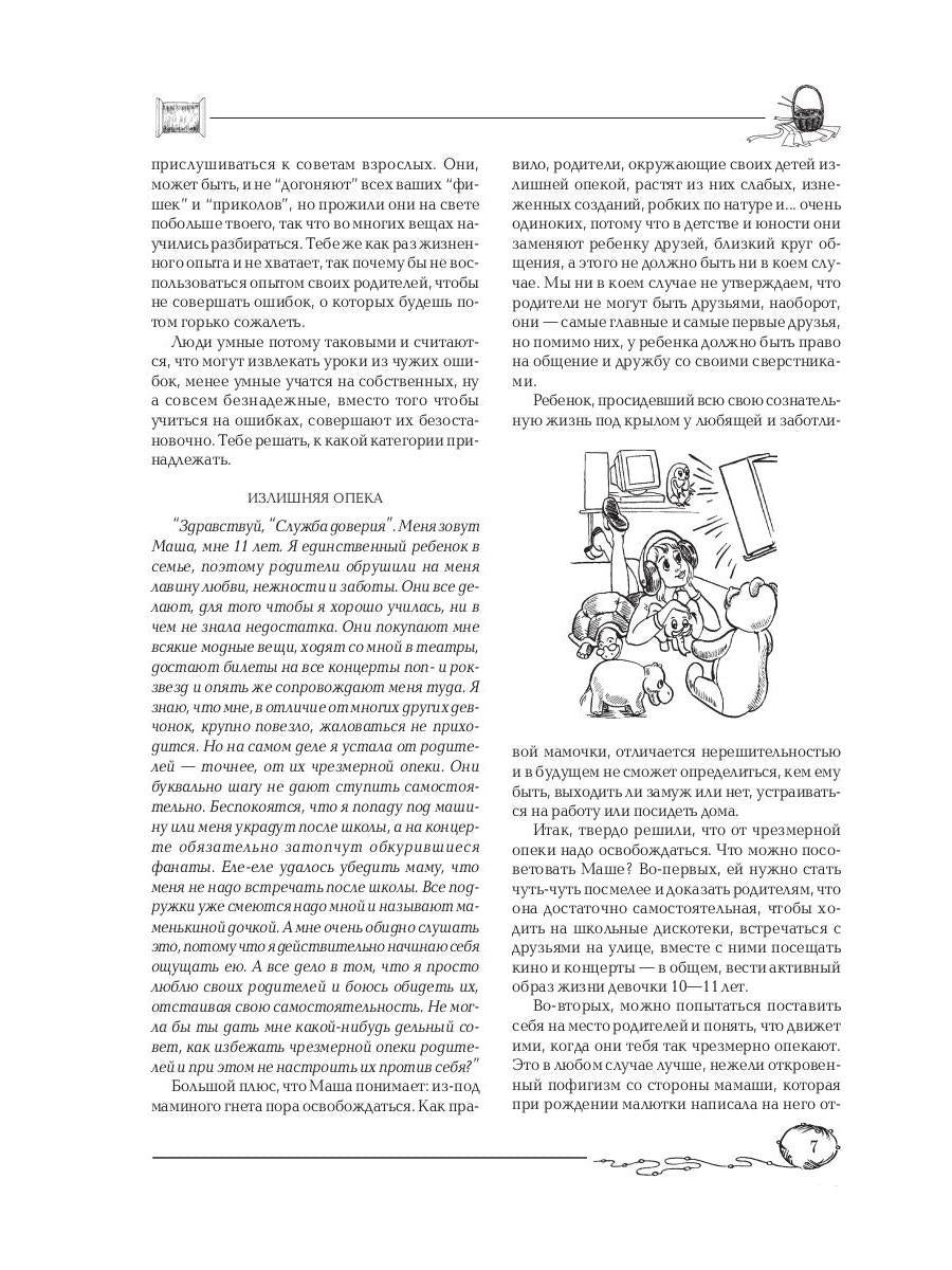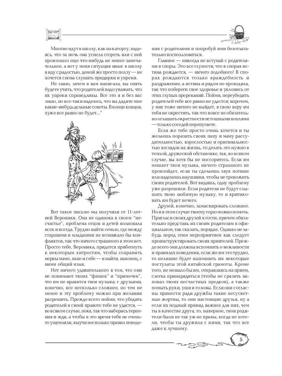 Handling time: 19 days Автор: Снегирева Алена, «Советы старшей подруги»: Если ты нуждаешься в помощи, но не знаешь, у кого попросить совета, данная книга тебе поможет. Она посоветует, как быть, если в классе тебя обижают, как разобраться в своих чувствах, как обратить внимание мальчика на себя. Она расскажет, как справиться с чувством ревности при рождении маленькой сестренки, как развеять тоску и плохое настроение, как подружиться и найти общий язык с окружающими. Подобные проблемы волнуют большинство твоих сверстниц. В их письмах ты найдешь созвучные тебе темы, а опытный психолог расскажет, как вести себя в тех или иных ситуациях.