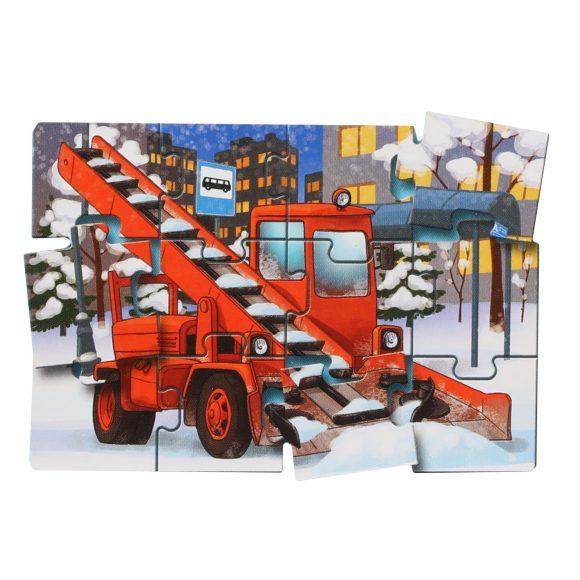 Пазл "Спешим на помощь" - напольный пазл для детей.Эта игра для тех, кто только учится собирать пазлы. Простая картинка, оригинальная вырубка, эмоционально окрашенный образ помогут достичь результата.На картинках пазлов изображена городская техника и машины спецслужб. Дети увидят полицейскую и пожарную машины, скорую помощь, а также снегоуборщик. Все рисунки выполнены четко, техника на них очень похожа на настоящую.Напольные пазлы способствуют развитию:- внимания;- мелкой моторики;- сенсорных навыков;- ассоциативного мышления.Что в наборе?В наборе вы найдете 30 деталей разных размеров (размеры деталей от 5,7 х 5,7 см до 11,5 х 8 см).Как играть?Задача игрока - найти и соединить в одну цельную картинку пазлы, подходящие друг другу по смыслу. Всего ребенок должен собрать 4 картинки, состоящие из 4, 6, 8 и 12 пазлов.Размер одной собранной картинки - 23,2 х 16 см.Для кого?Подойдет для малышей от 1,5 лет.Материал.Высококачественный плотный картон.