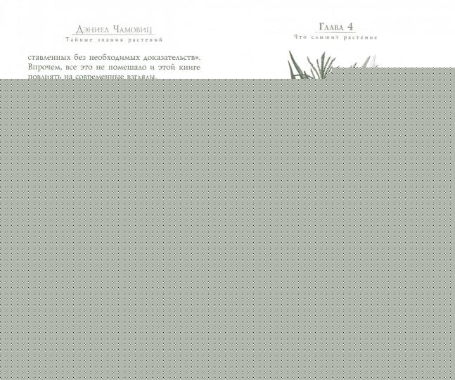 Как и все живое на планете, растения имеют тонко развитые сенсорную и регуляторную системы, которые позволяют им видоизменяться и приспосабливаться к изменениям окружающей среды. А могут ли растения чувствовать: различать цвета, ощущать вкус и аромат, ориентироваться в пространстве и испытывать эмоции? Какая музыка по вкусу мимозе и бархатцам? Какой механизм заставляет сомкнуться «челюсти» венериной мухоловки? Какие ароматы провоцируют ускоренное созревание груш и авокадо? Ответ на эти и другие вопросы вы узнаете из книги известного биолога Дэниела Чамовица. Опираясь на результаты новейших исследований современных ученых, Чамовиц объясняет принципы работы одного из чувств человека и сравнивает этот механизм с аналогичным, присутствующим у растений. Загляните в удивительный мир живых, чувствующих растений — вас ожидают интригующие открытия!