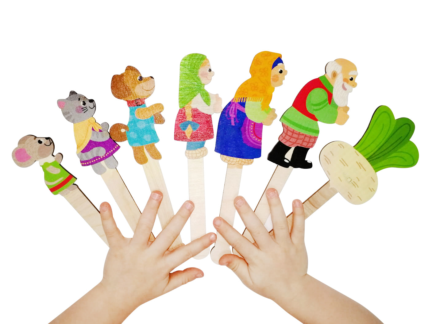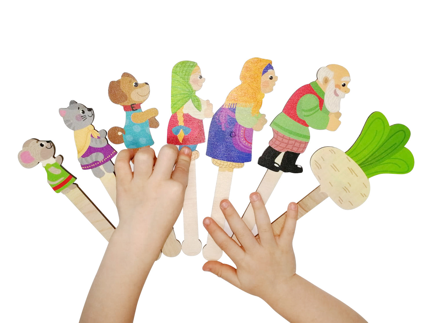 Театр штоковый. Набор кукол и декораций. Любимые сказки. "Репка", "Курочка Ряба", "Страшный Пых"