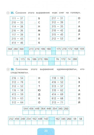 Данное пособие полностью соответствует федеральному государственному образовательному стандарту (второго поколения) для начальной школы. Данный тренажёр предназначен для формирования и развития вычислительного навыка решения примеров с двузначными и трёхзначными числами в пределах тысячи в 3-4-х классах. Решив примеры, учащиеся смогут прочитать зашифрованные афоризмы. Работа с афоризмами направлена на обогащение, развитие образности и выразительности речи.Пособие предназначено учащимся, учителям начальной школы и родителям, которые хотят помочь своим детям преодолеть трудности в освоении программы.