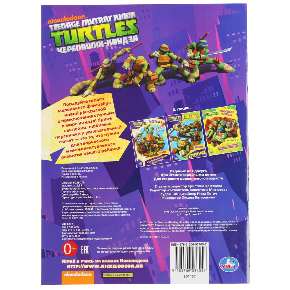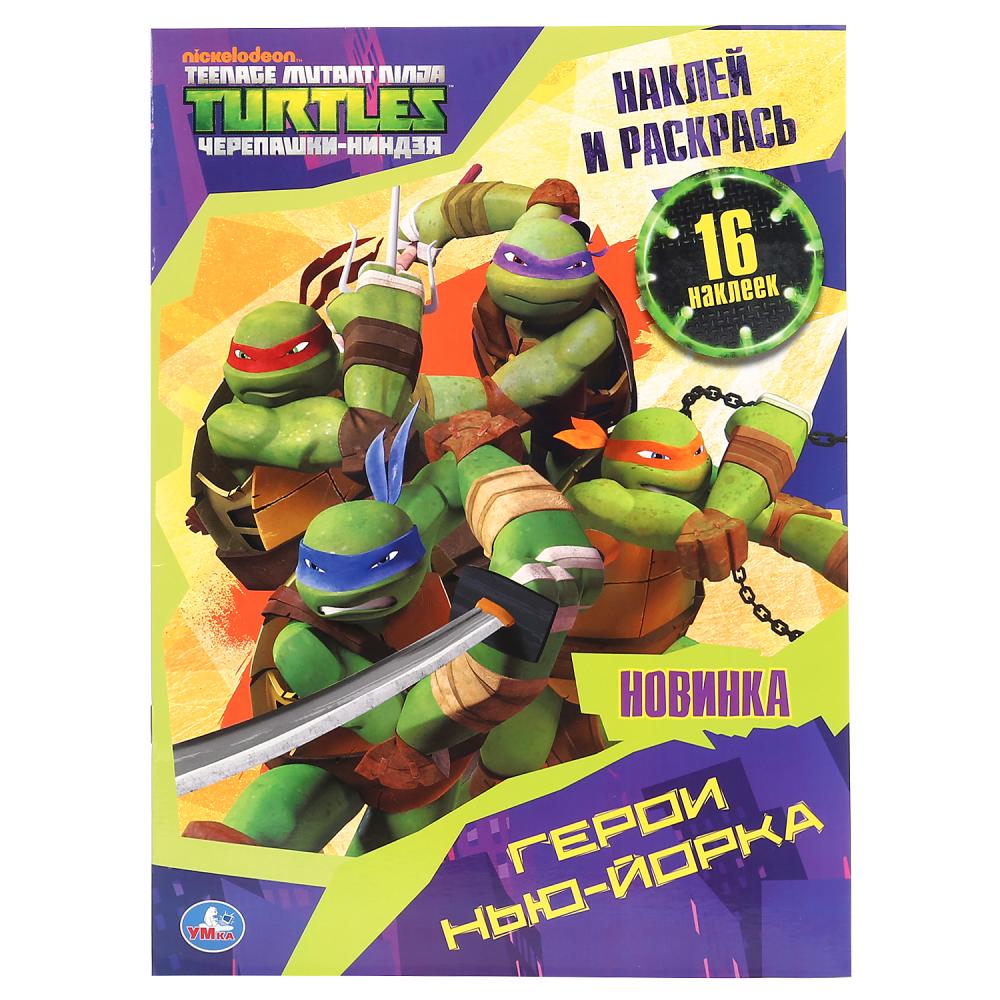 "УМКА". ГЕРОИ НЬЮ-ЙОРКА. ЧЕРЕПАШКИ-НИНДЗЯ (НАКЛЕЙ И РАСКРАСЬ А4) ФОРМАТ 214Х290ММ 16 СТР. в кор.50шт