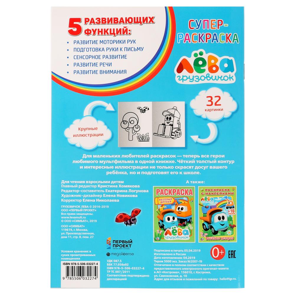 "УМКА". ГРУЗОВИЧОК ЛЕВА (СУПЕР-РАСКРАСКА РАСКРАСКА ДЛЯ МАЛЕНЬКИХ, 32 КАРТИНКИ) 32 СТР. в кор.50шт