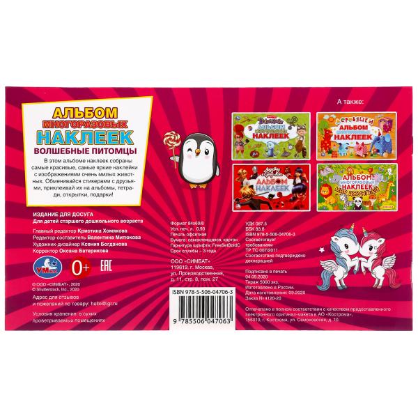 Альбом многоразовых наклеек «Волшебные питомцы» ТМ «УМка» станет прекрасным подарком для вашего ребёнка:- красочные многоразовые наклейки- короткие тексты на каждой странице- удобный формат- милые персонажиМалыш с удовольствием будет приклеивать ярк
