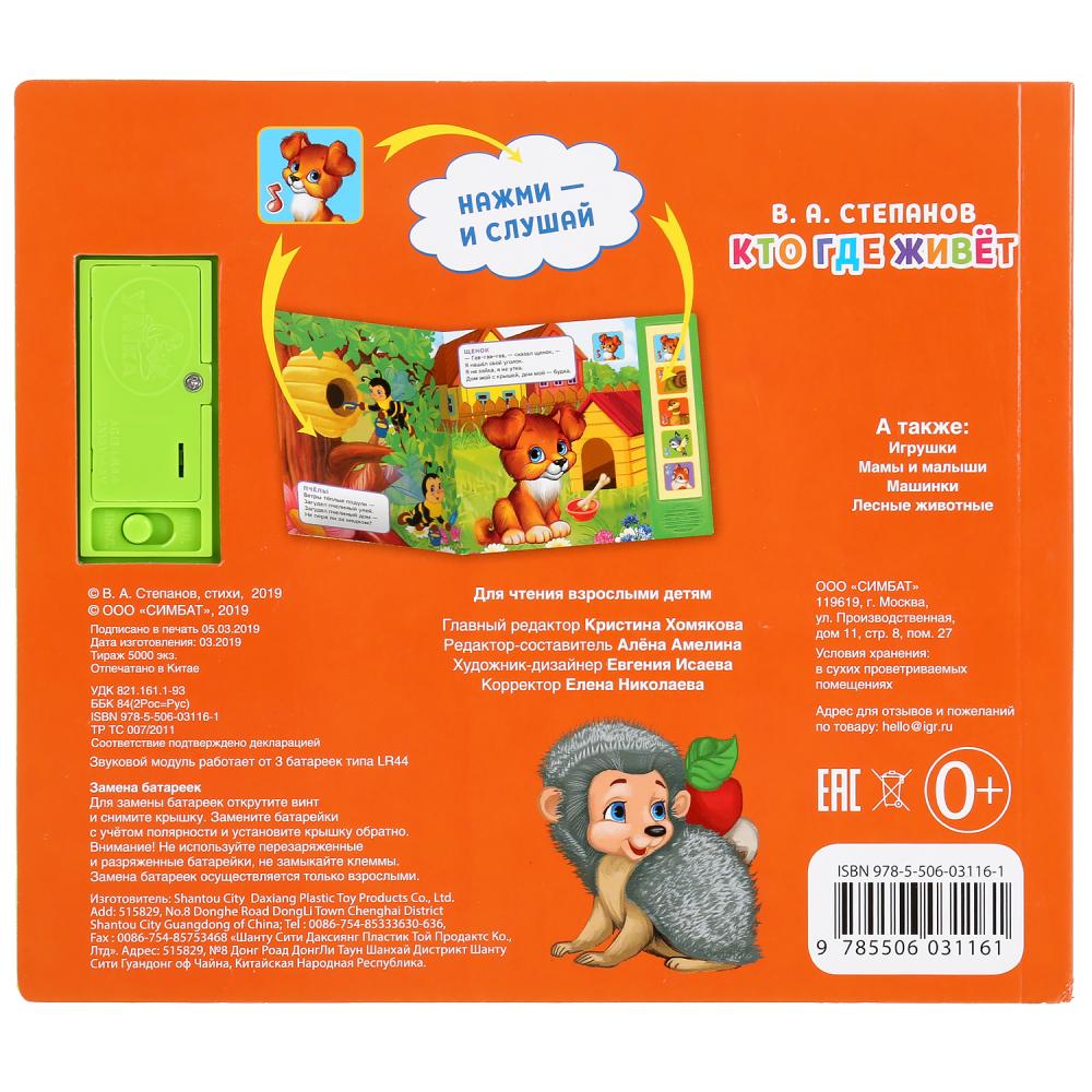 "Умка". Кто где живет. В.Степанов (5 звук. кнопок). Формат: 200х175мм, 10 карт. стр. в кор.32шт