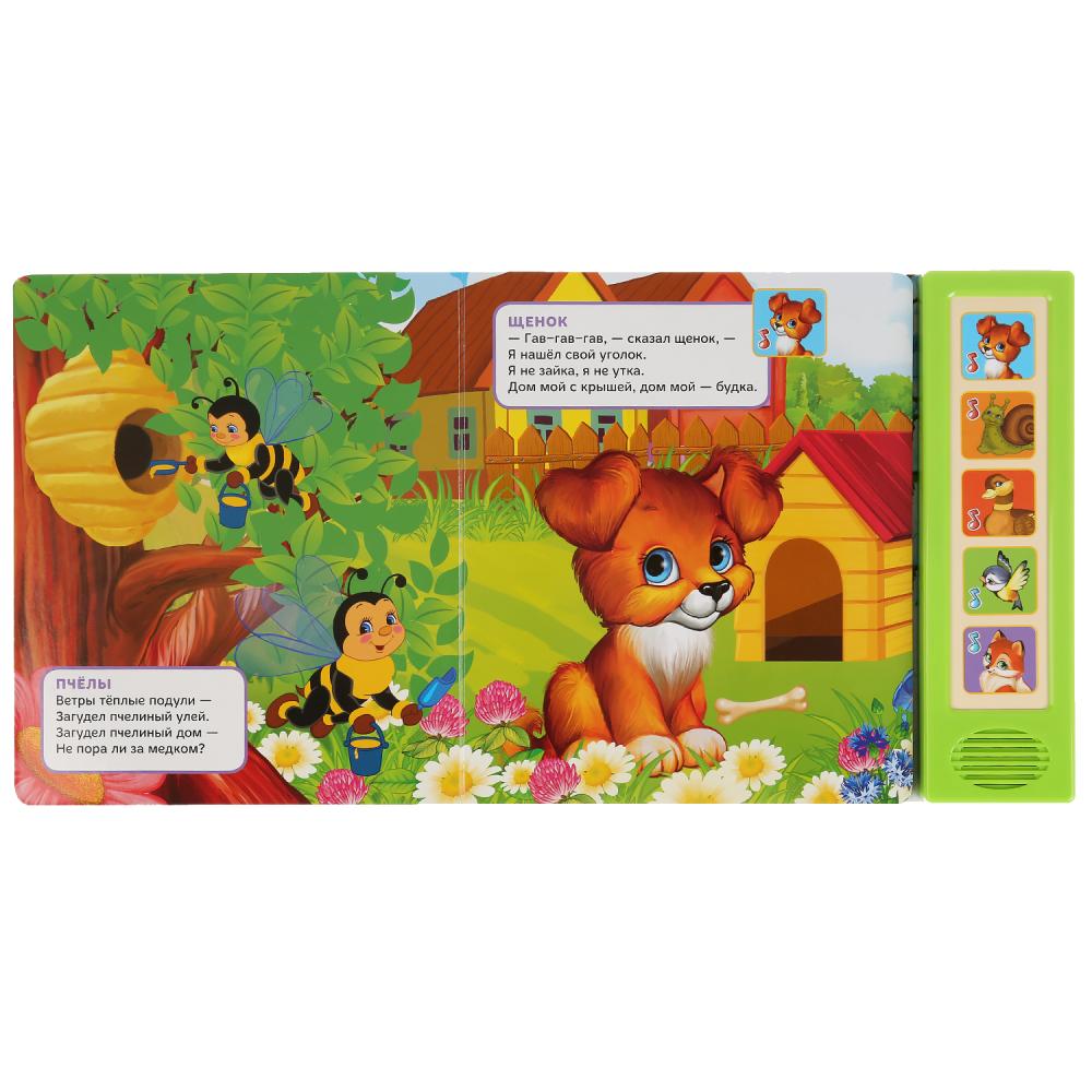 Малыш будет с удовольствием рассматривать яркие страницы, читать стихи вместе с родителями, знакомиться с животными и запоминать, кто где живёт. Нажимай на кнопочки и слушай песенки. Книжка сделана из плотного картона, поэтому родители могут не опасаться за её сохранность. Благодаря компактному формату её удобно брать с собой.