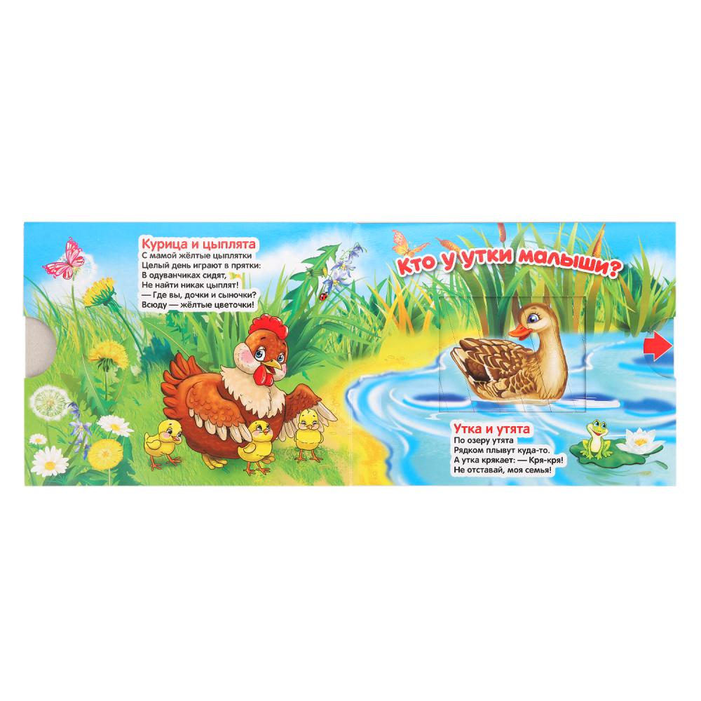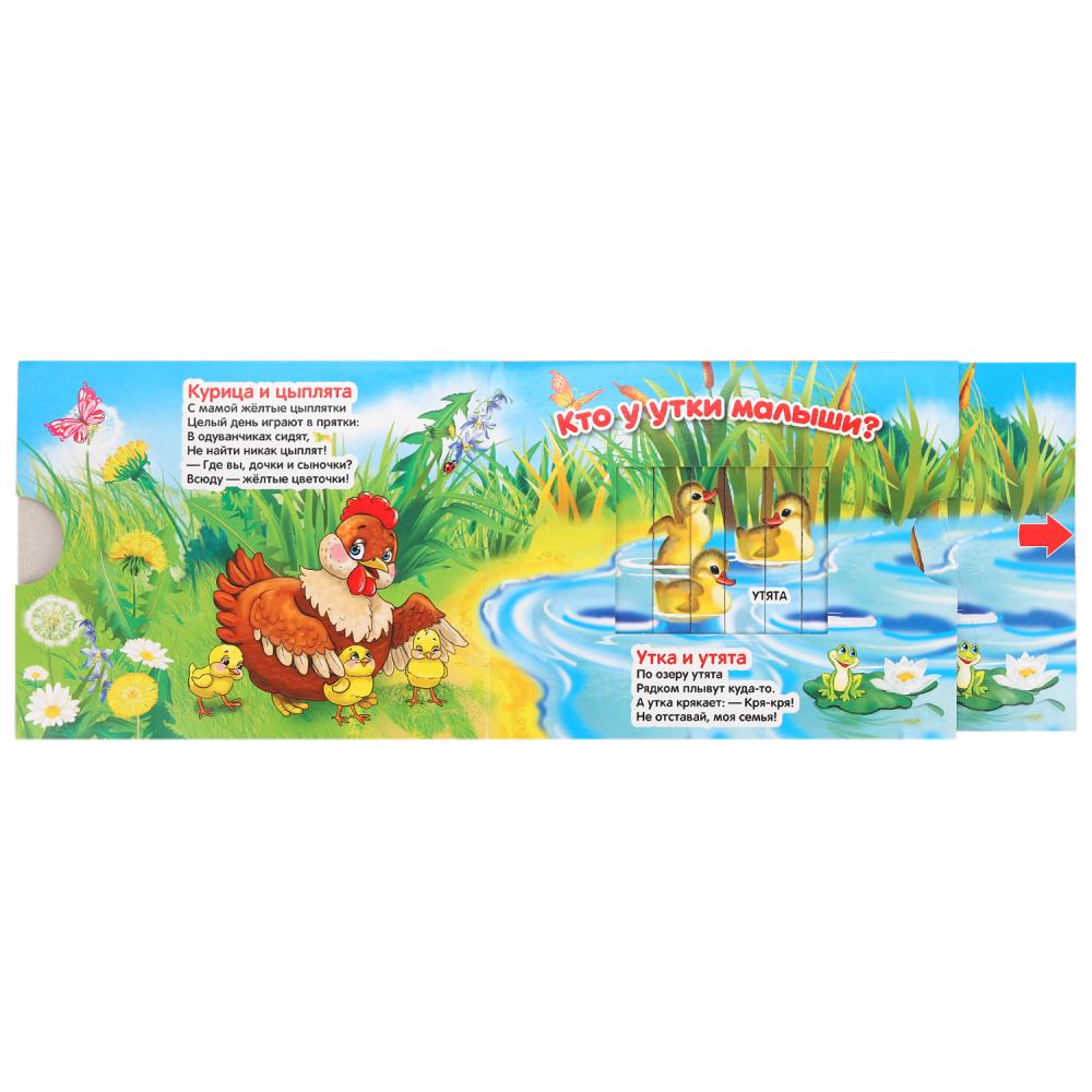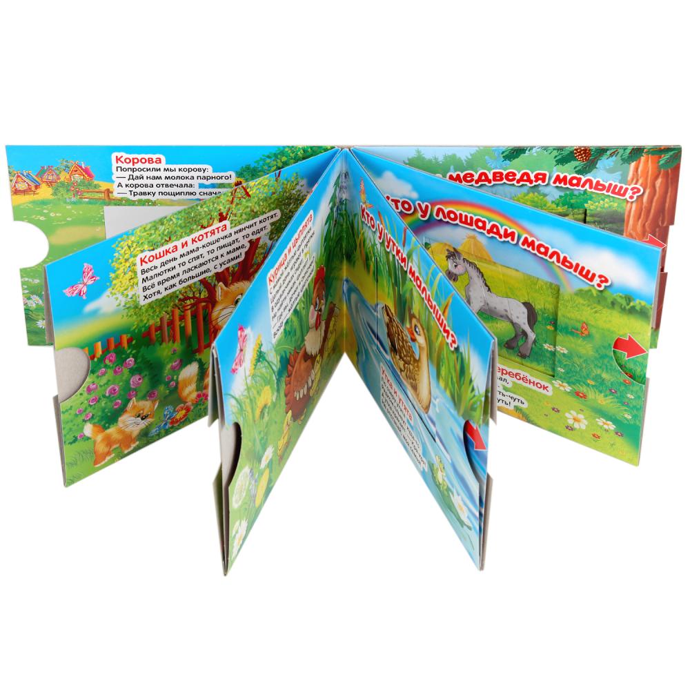 Добрые стихи о животных и красочные иллюстрации расширят кругозор ребёнка. За каждой задвижкой спрятан сюрприз: ребёнку нужно потянуть – и появится ответ на вопрос.
