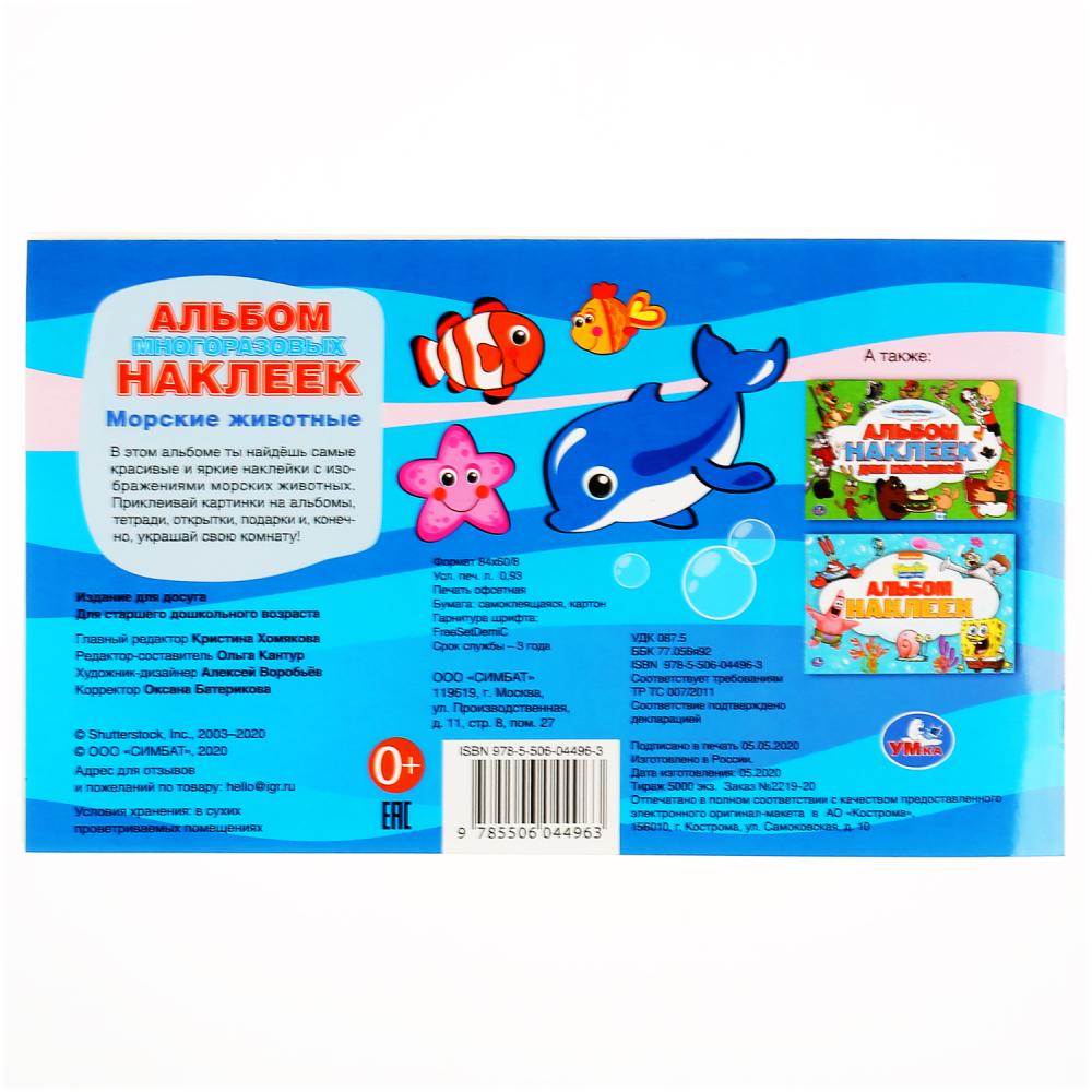 Альбом многоразовых наклеек «Морские животные» ТМ «УМка» обязательно понравится маленькому любознайке: